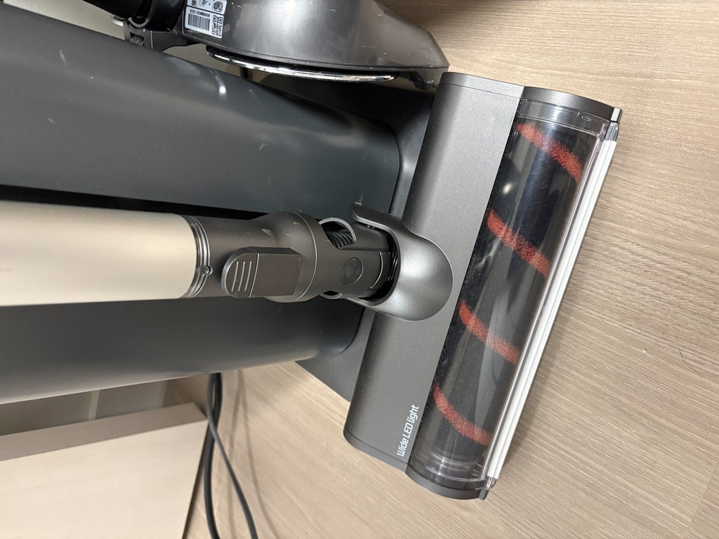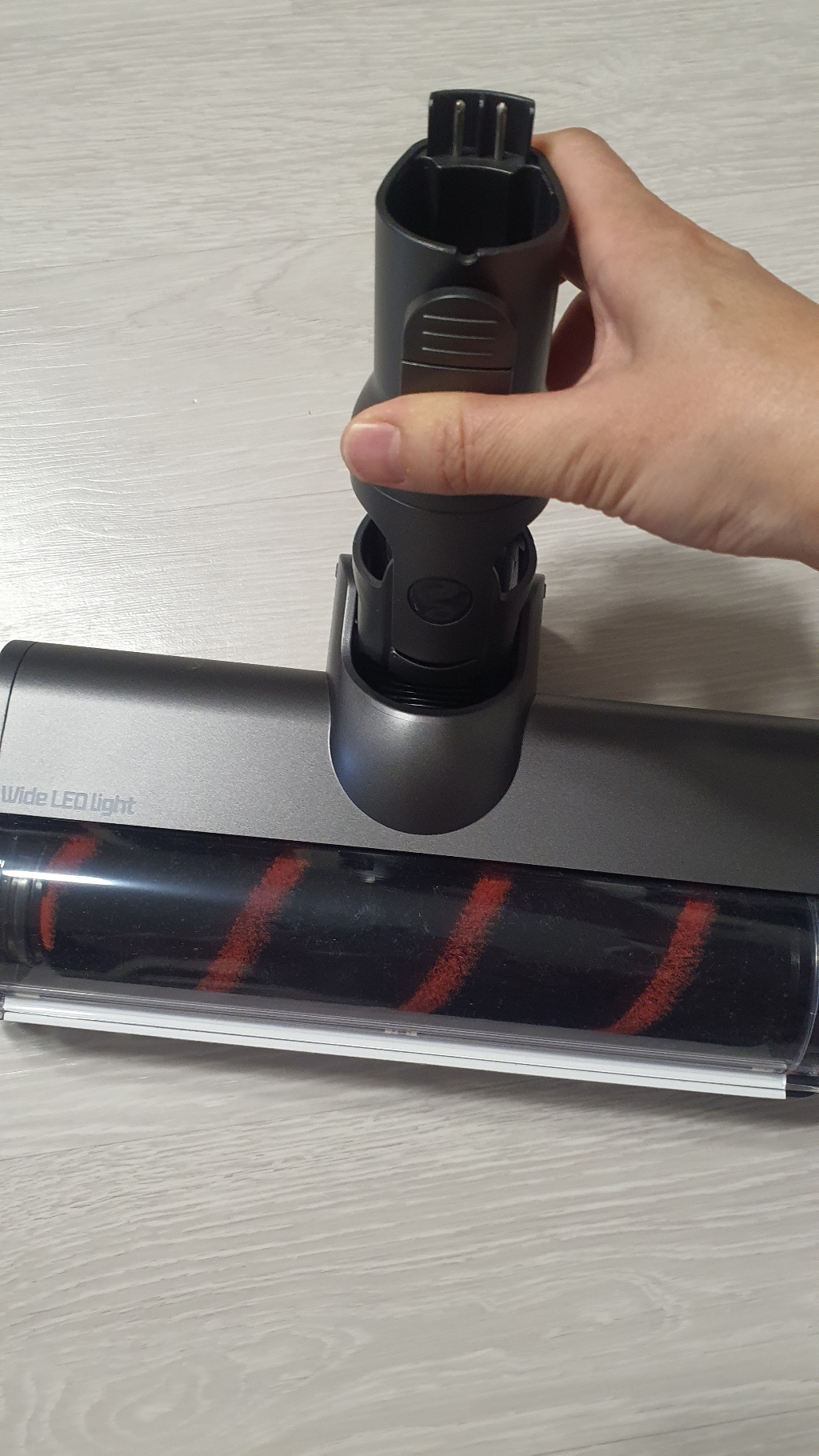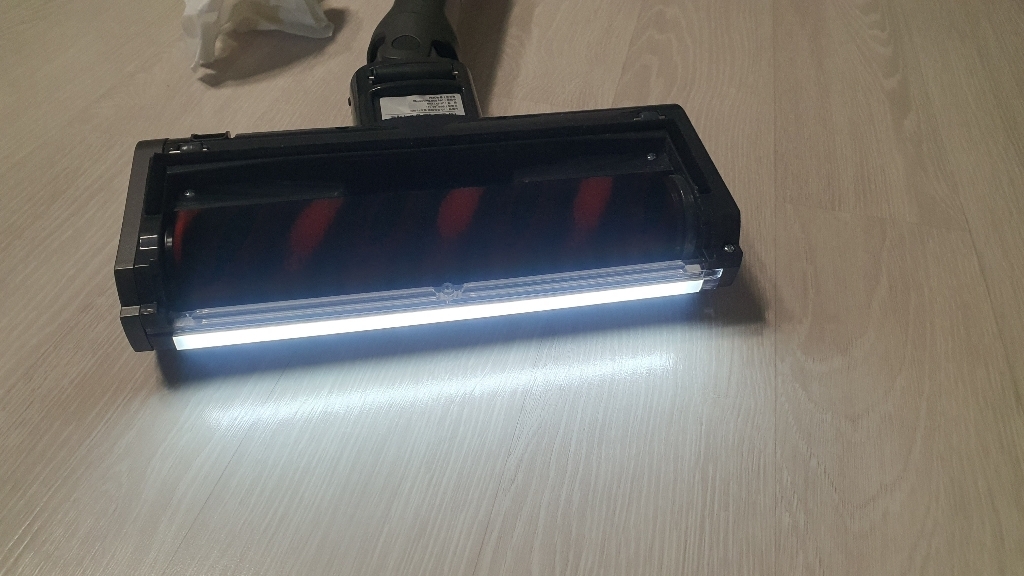 그리고 LED 라이트 덕분에 청소기 헤드에 불빛이 들어오니 어두운 가구 밑이나