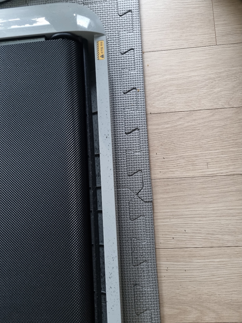 항상 벨트를 가운데에 맞쳐서 사용하는데 계속 걷다보니 오른쪽으로 움직이는 것 같아요. 그래서 좀 더 딱딱한 전용매트를 깔고 그 위에서 해야겠다는 생각이 들어요.