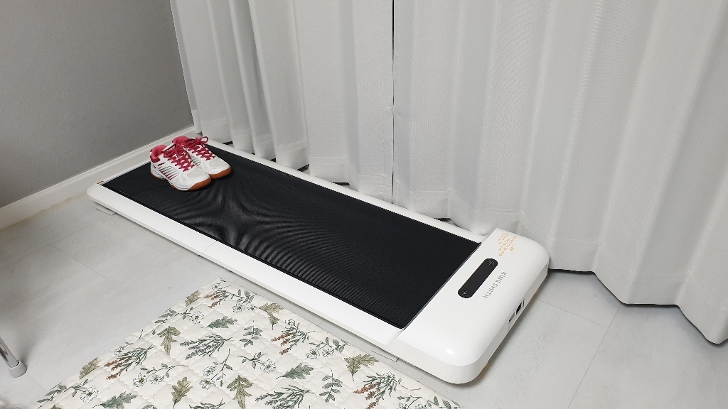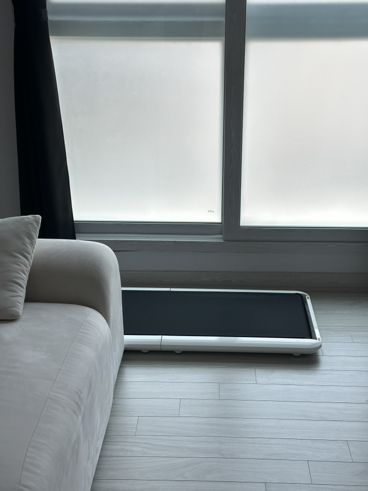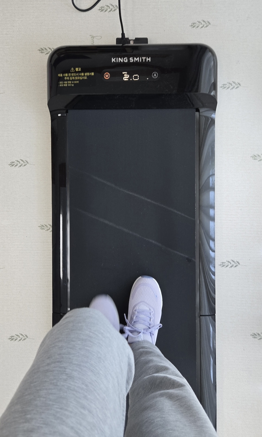 접으면 컴팩트한데 피면 길이가 넉넉해져서 사용하기 편하고 속도도 원하는 속도로 맞출 수 있어서 좋아요. 저는 4.5km정도가 적당하고 30분정도 걷다보니 땀이 나네요~