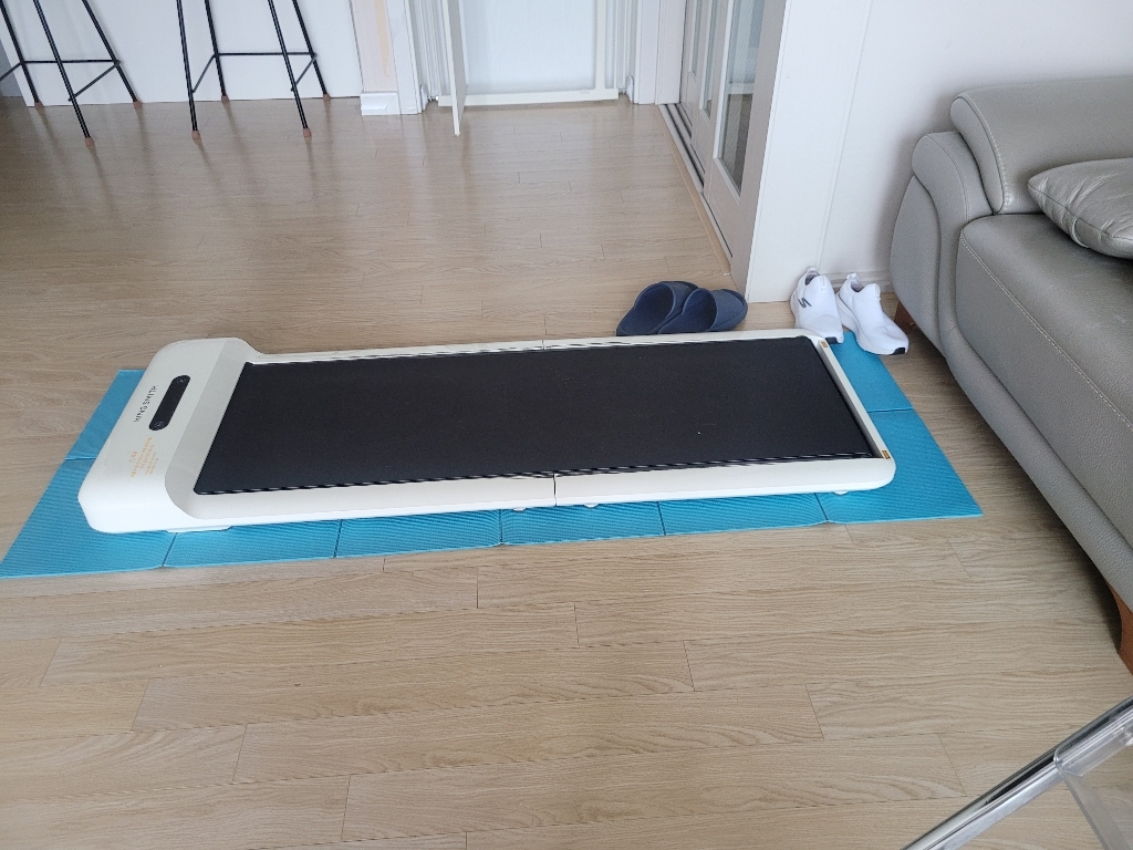 그리고 우리집은 아이들이 있어서 거실에 놀이매트를 깔고 있어요. 층간소음도 있어서 그 매트 위에서 워킹을 하고 있었는데 매트가 살짝 푹신하다보니 균형을 맞추기가 조금 어려워요.