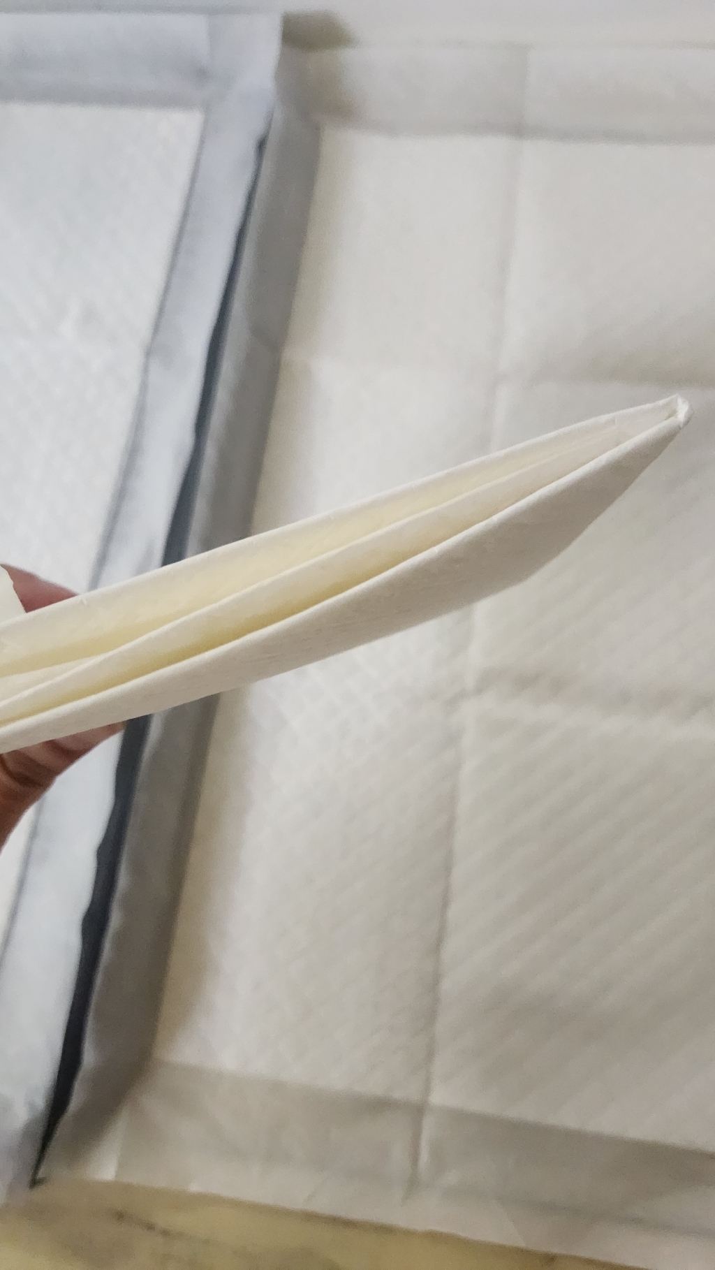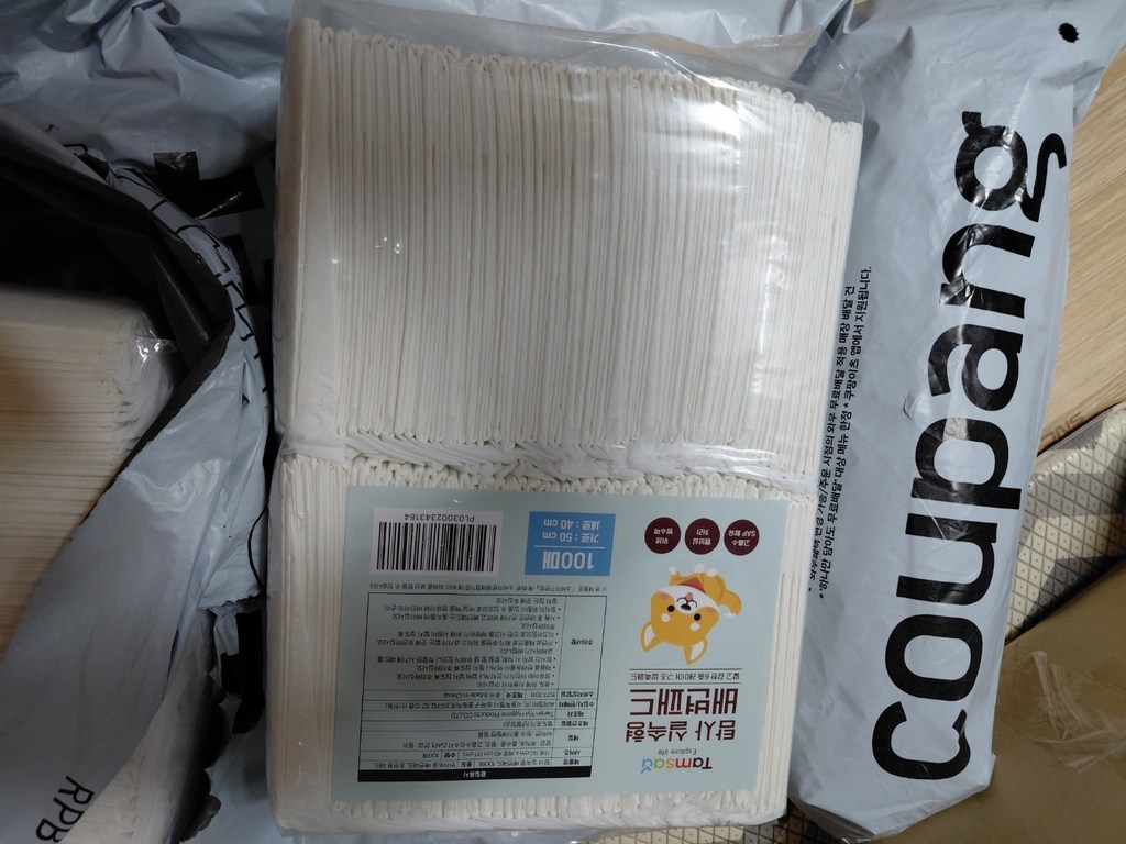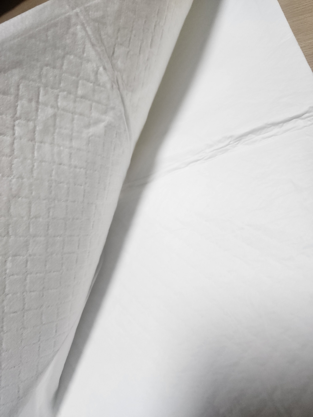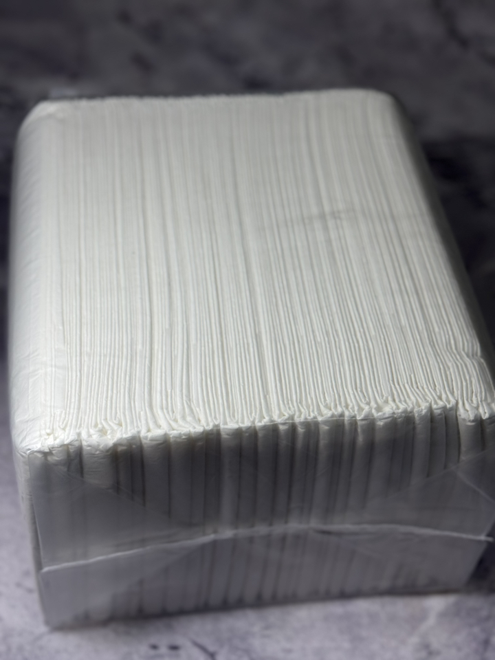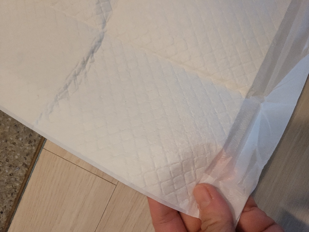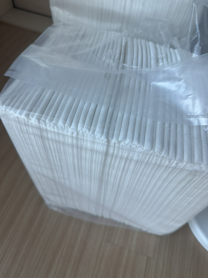사이즈는 50×40cm라서 배변판에 딱 알맞은 크기예요. 저는 배변판에 여러겹 깔아서 사용중이에요. 소변도 많이 보는 편이고 갈아주기도 쉽고 휴지통에 버릴 때 부피도 크지 않아서 좋아요.