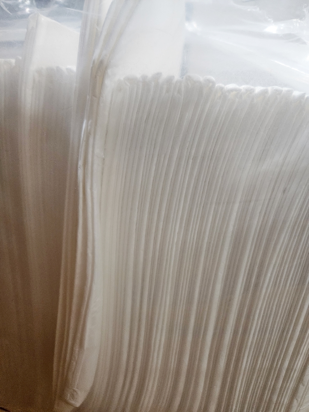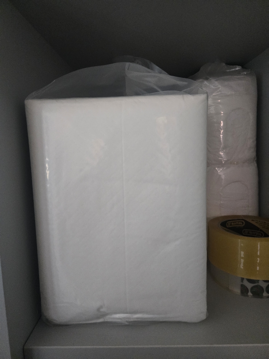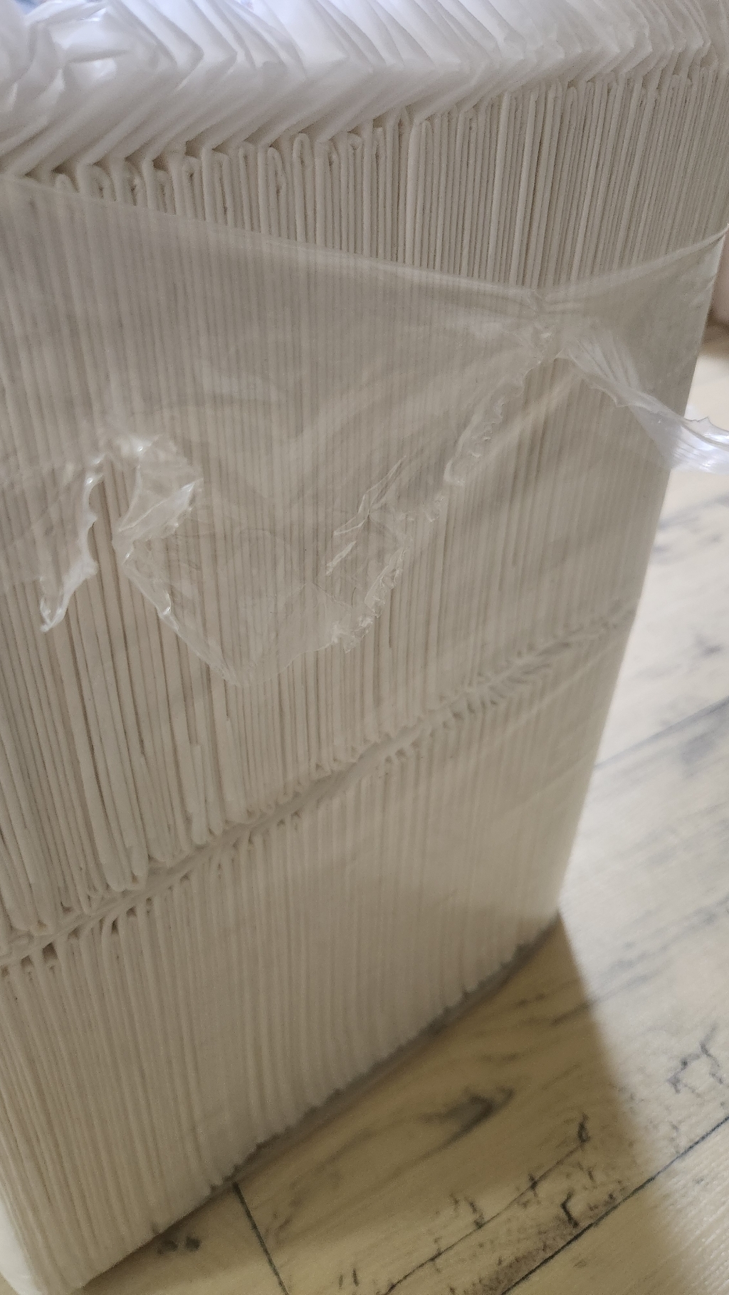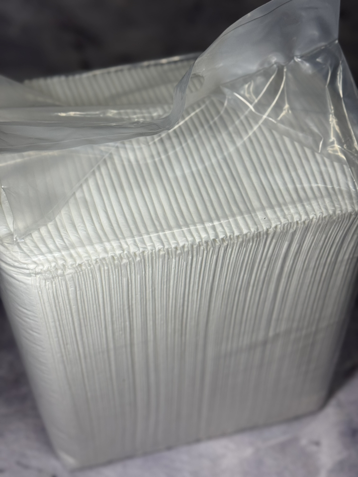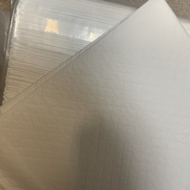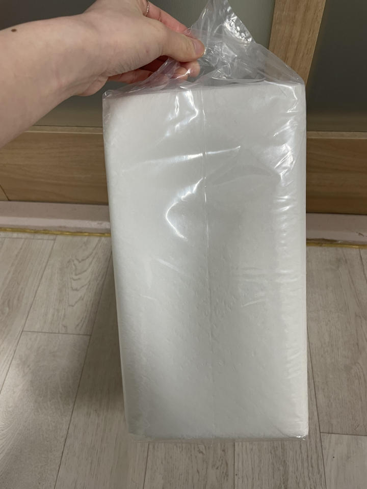 사이즈는 50×40cm라서 배변판에 딱 알맞은 크기예요. 저는 배변판에 여러겹 깔아서 사용중이에요. 소변도 많이 보는 편이고 갈아주기도 쉽고 휴지통에 버릴 때 부피도 크지 않아서 좋아요.