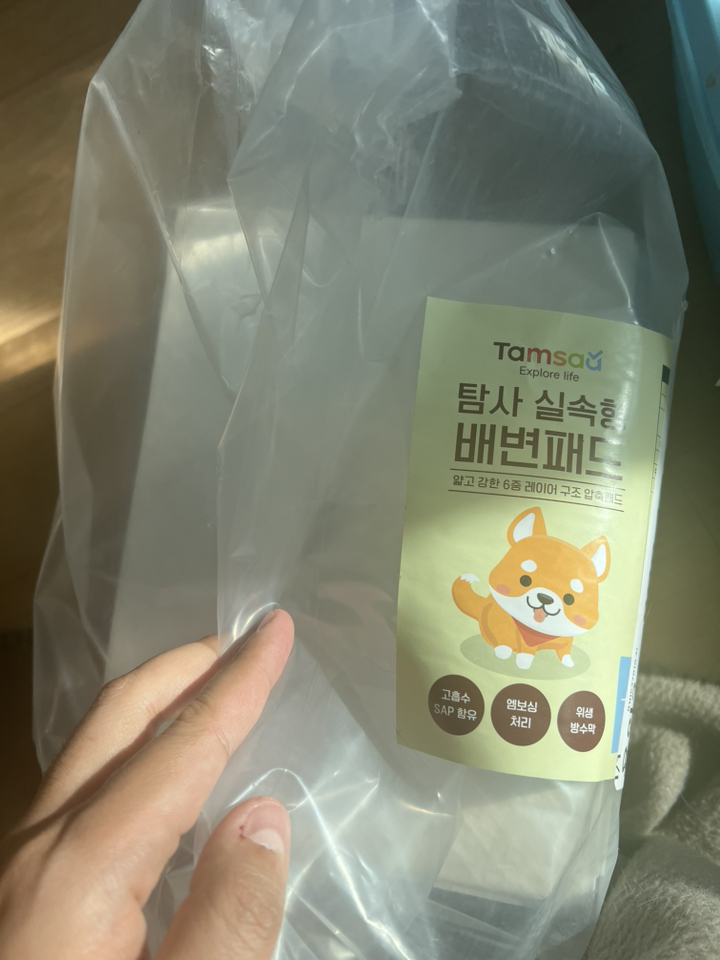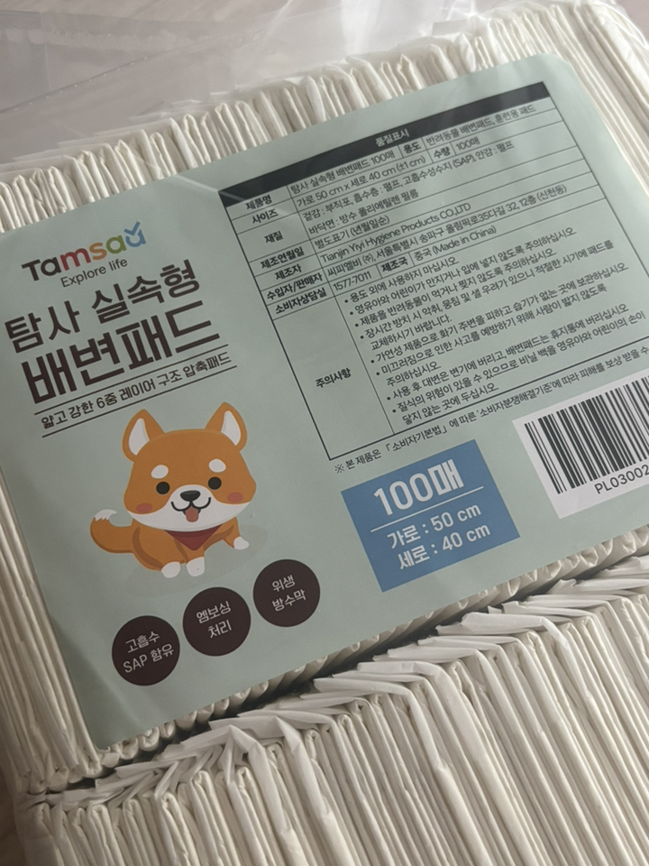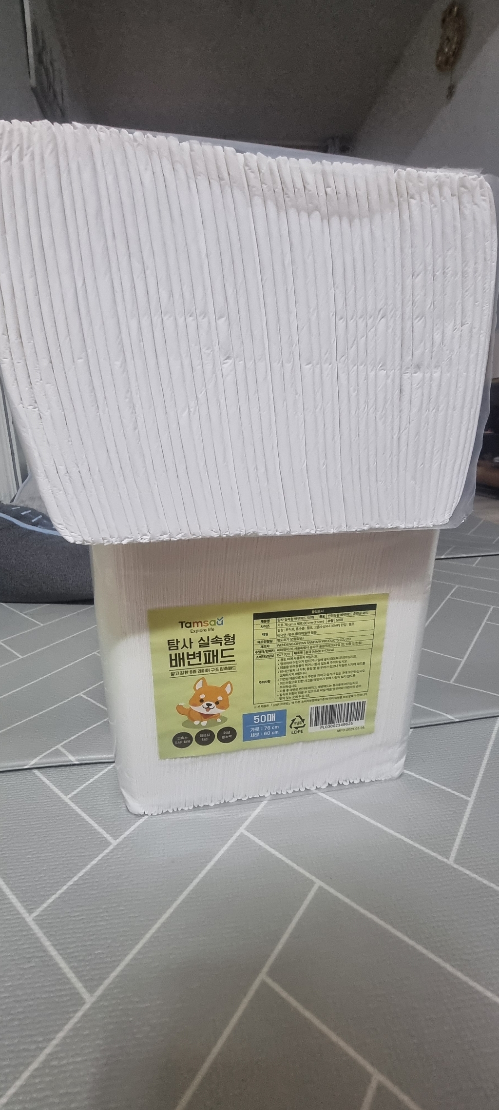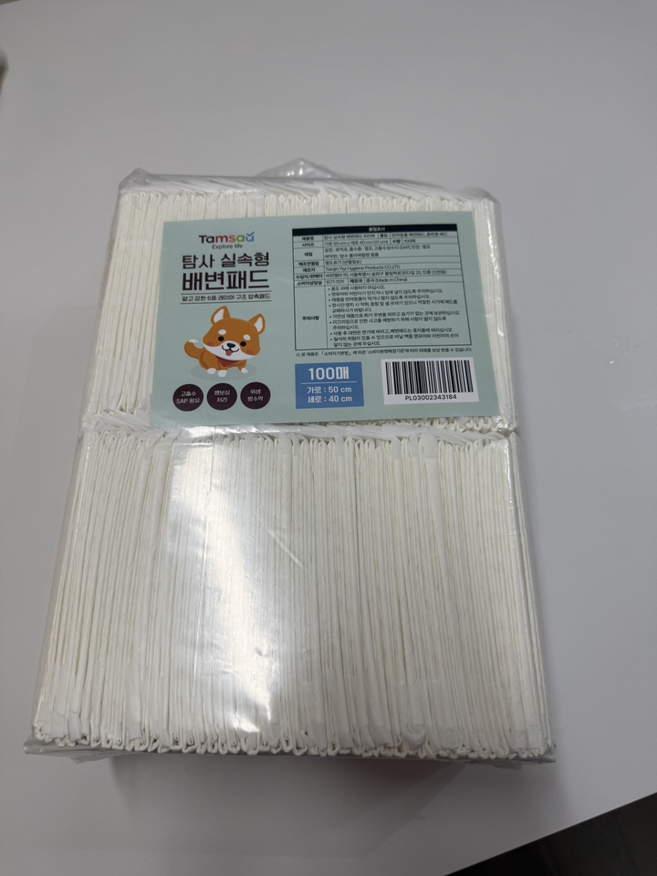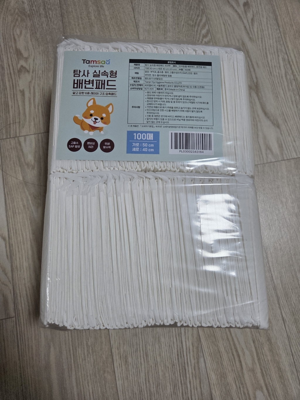 그래서 이것저것 검색하다가 가격이 가장 저렴했던 탐사 배변패드를 구매했었는데 솔직히 저렴해서 큰 기대는 않았어요