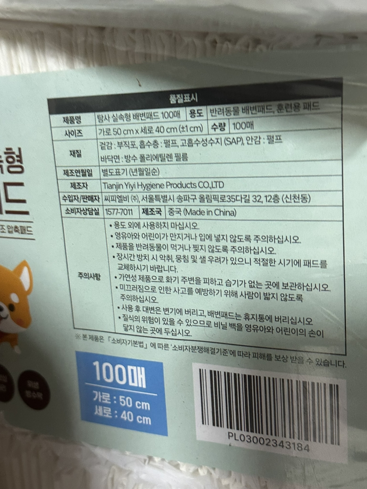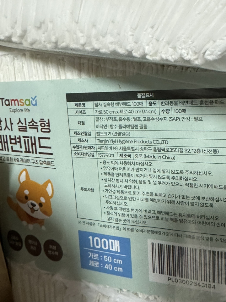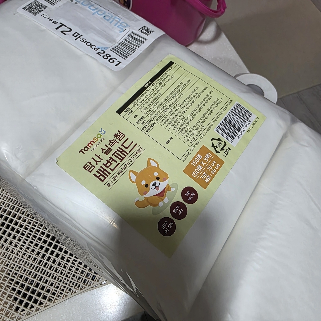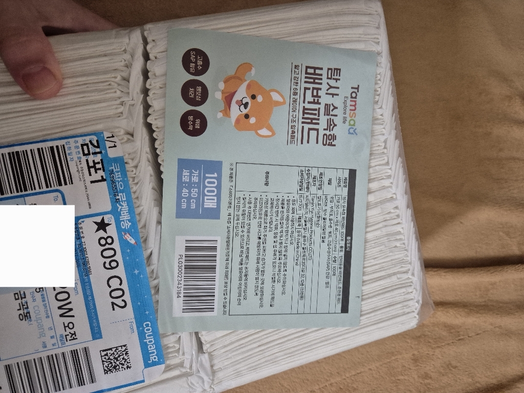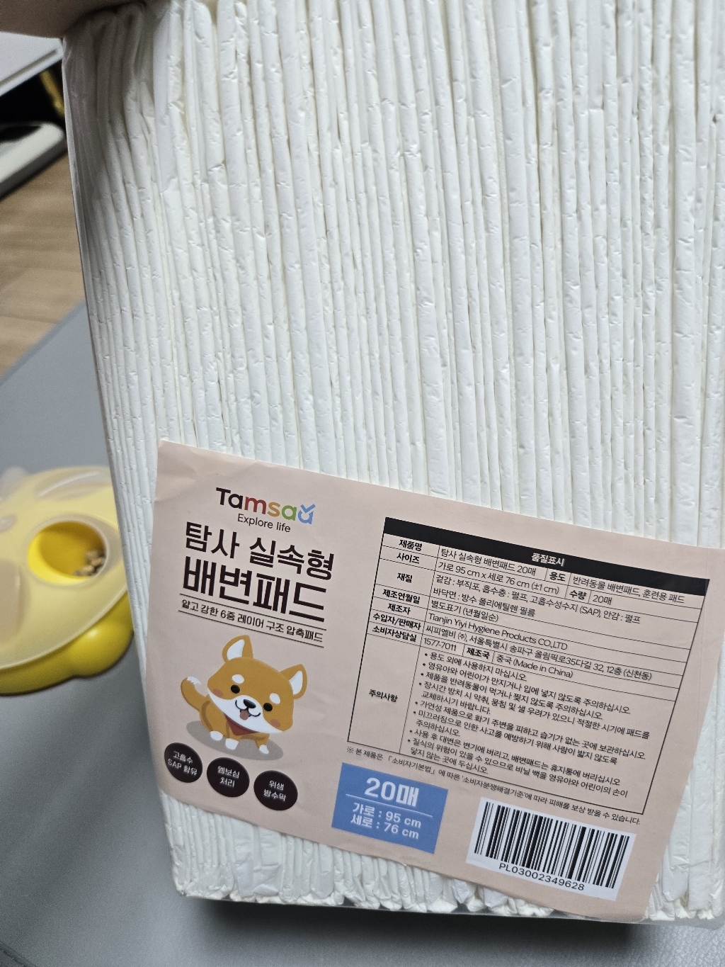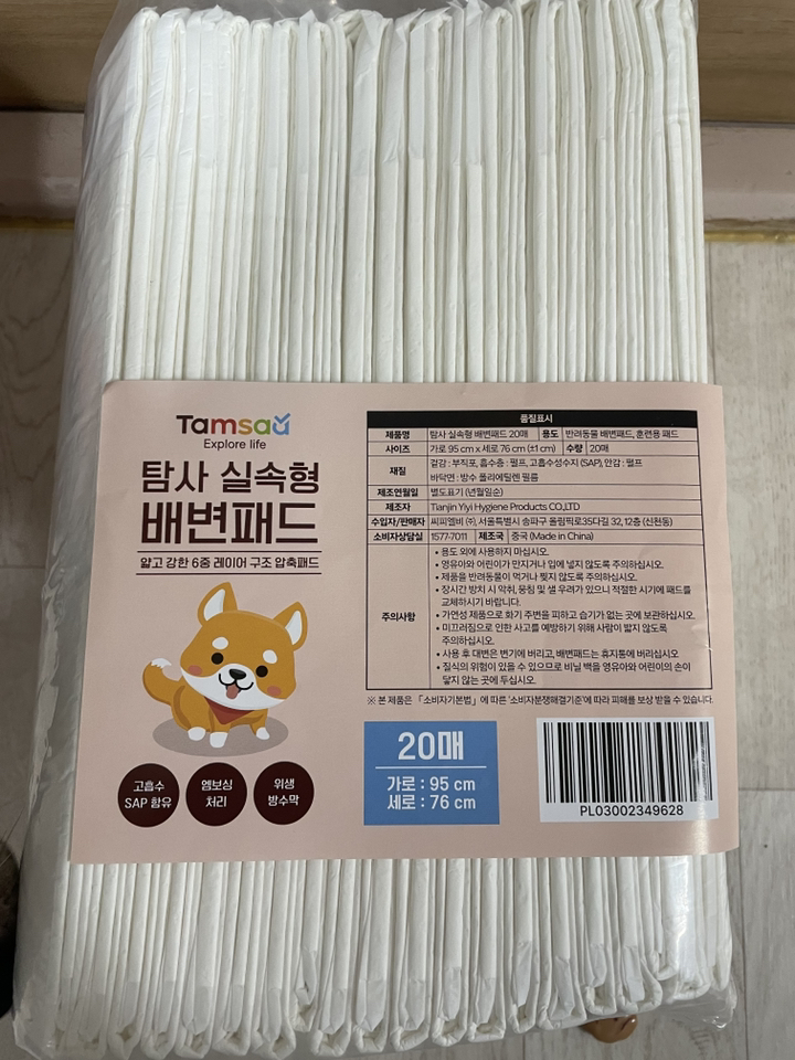 그래서 이것저것 검색하다가 가격이 가장 저렴했던 탐사 배변패드를 구매했었는데 솔직히 저렴해서 큰 기대는 않았어요
