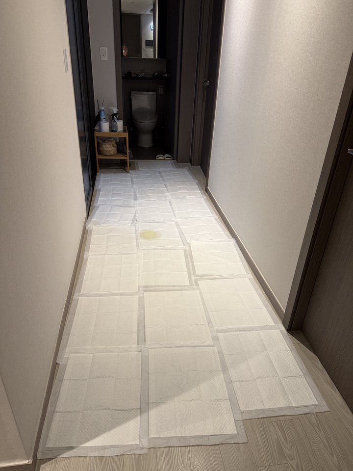 흡수 속도가 빠른 편이라 바로 치워주면 바닥 오염 걱정도 크지 않고,