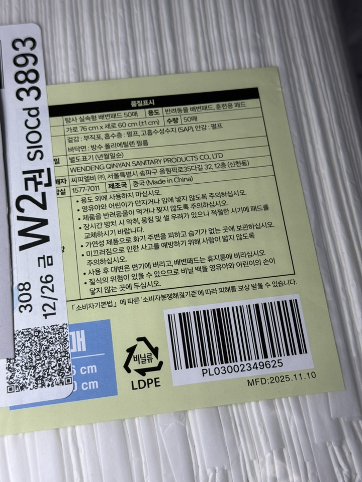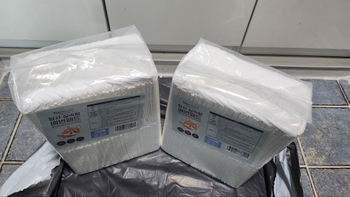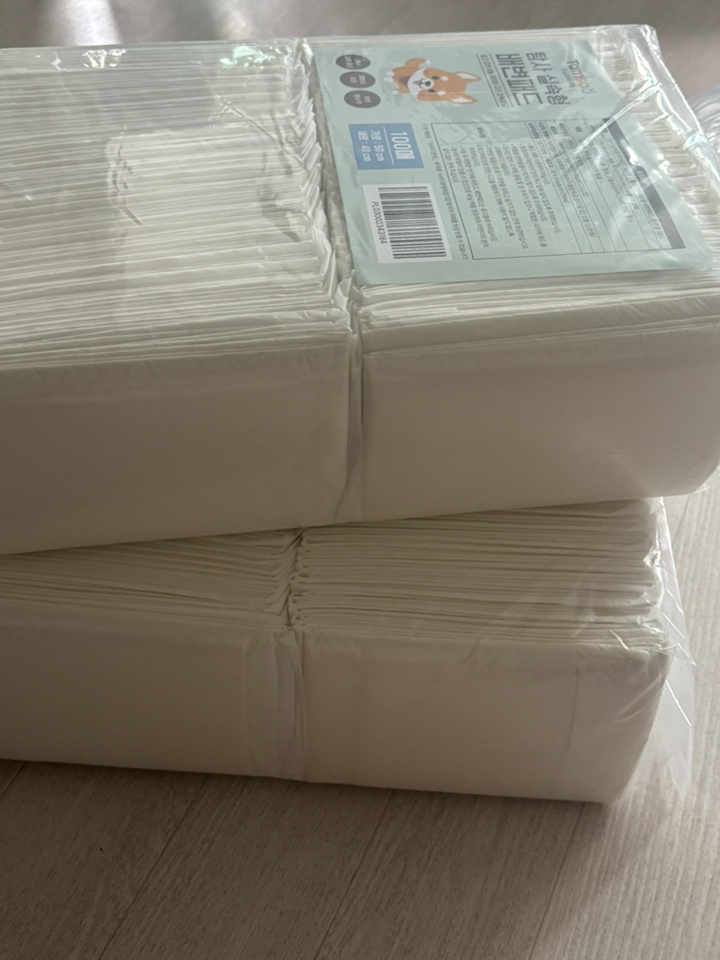 무엇보다 마음에 드는 건 구성과 가격이에요. 100매입 2개 구성이라 총 200매라서 양이 넉넉해요. 배변패드는 떨어질 때마다 신경 쓰이는데, 이건 한 번 사두면 한동안 걱정 없이 쓸 수 있어서 좋아요. 가격 대비 양도 많고, 막 쓰기에도 부담이 없어서 자주 교체해줄 수 있는 점이 가장 큰 장점인 것 같아요.