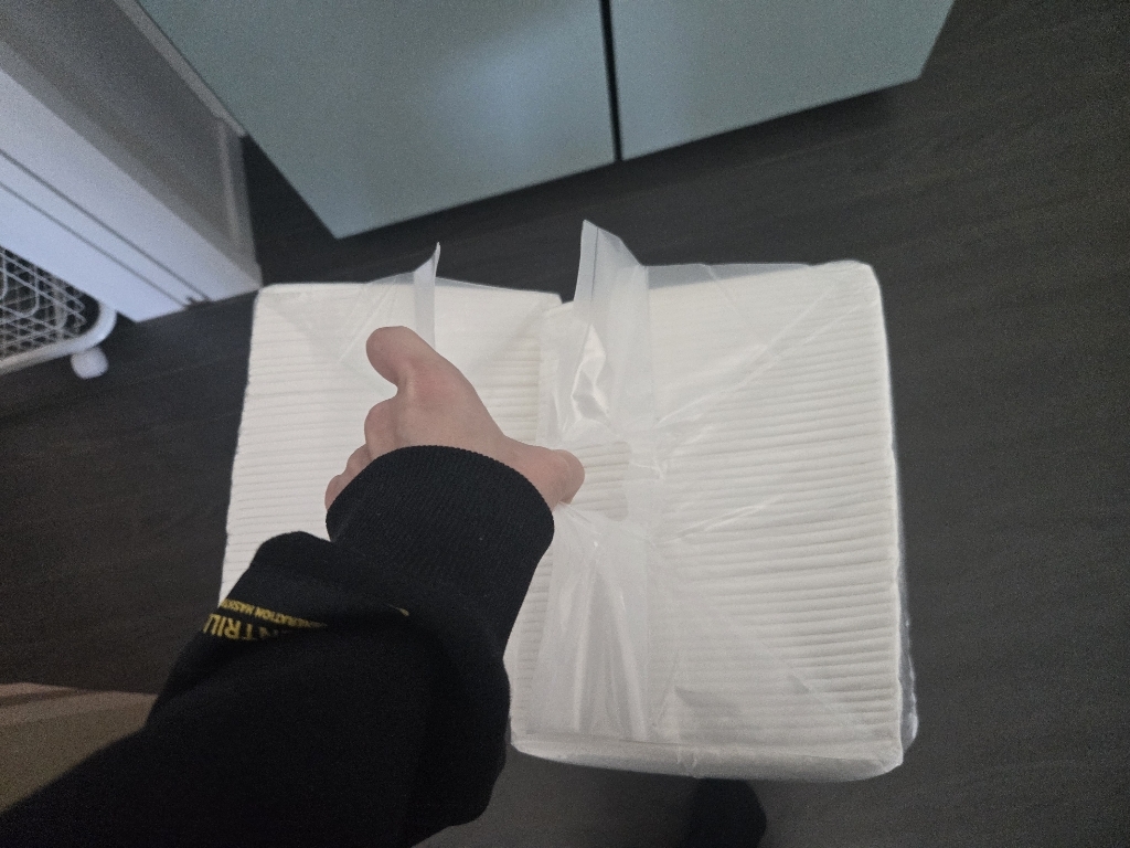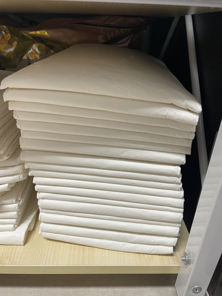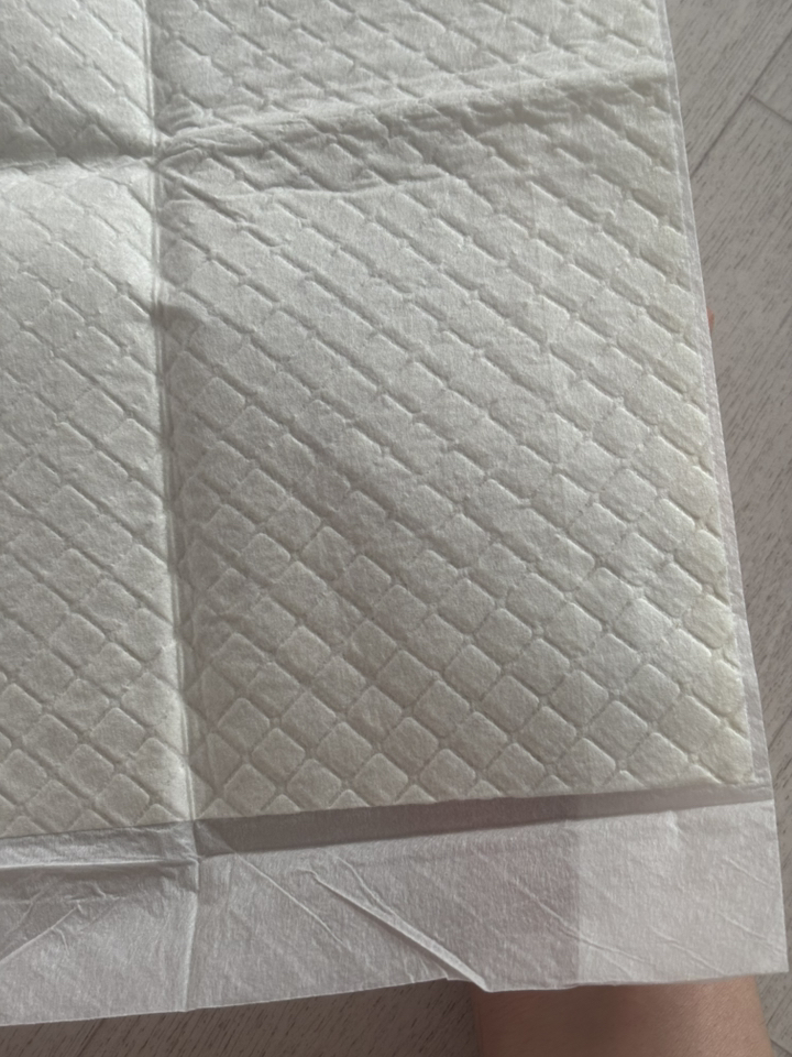 사이즈도 적당해서 배변판에 딱 맞게 들어가고 테이프 흔적이나 비닐 냄새 같은 것도 없었어요! 패드 모서리가 쉽게 말리거나 찢어지는 경우도 없어서 아침에 패드를 체크할 때마다 은근히 스트레스 받던 부분이 줄어들었어요