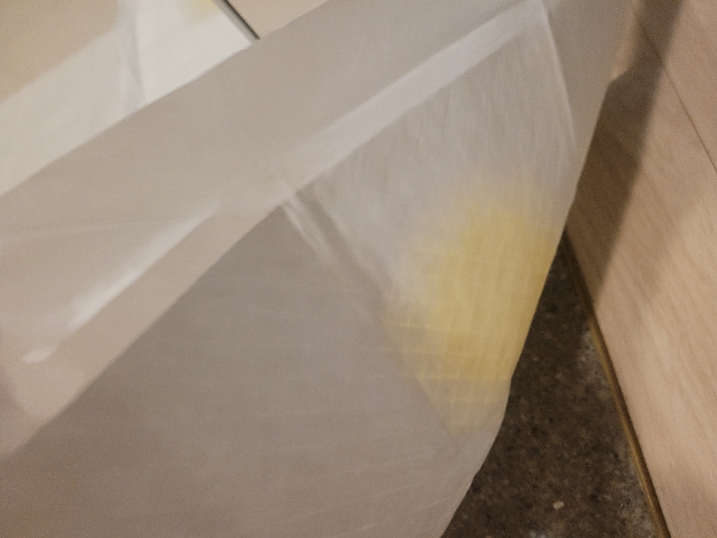 한 번의 소변은 빠르게 흡수되는 편입니다. 표면이 금방 보송해져서 발에 묻는 느낌이 거의 없어요. 다만 소변량이 많은 경우에는 가장자리에 살짝 번짐이 있을 수 있어요. 그래도 이 가격대에서는 충분히 만족스러운 흡수력입니다.