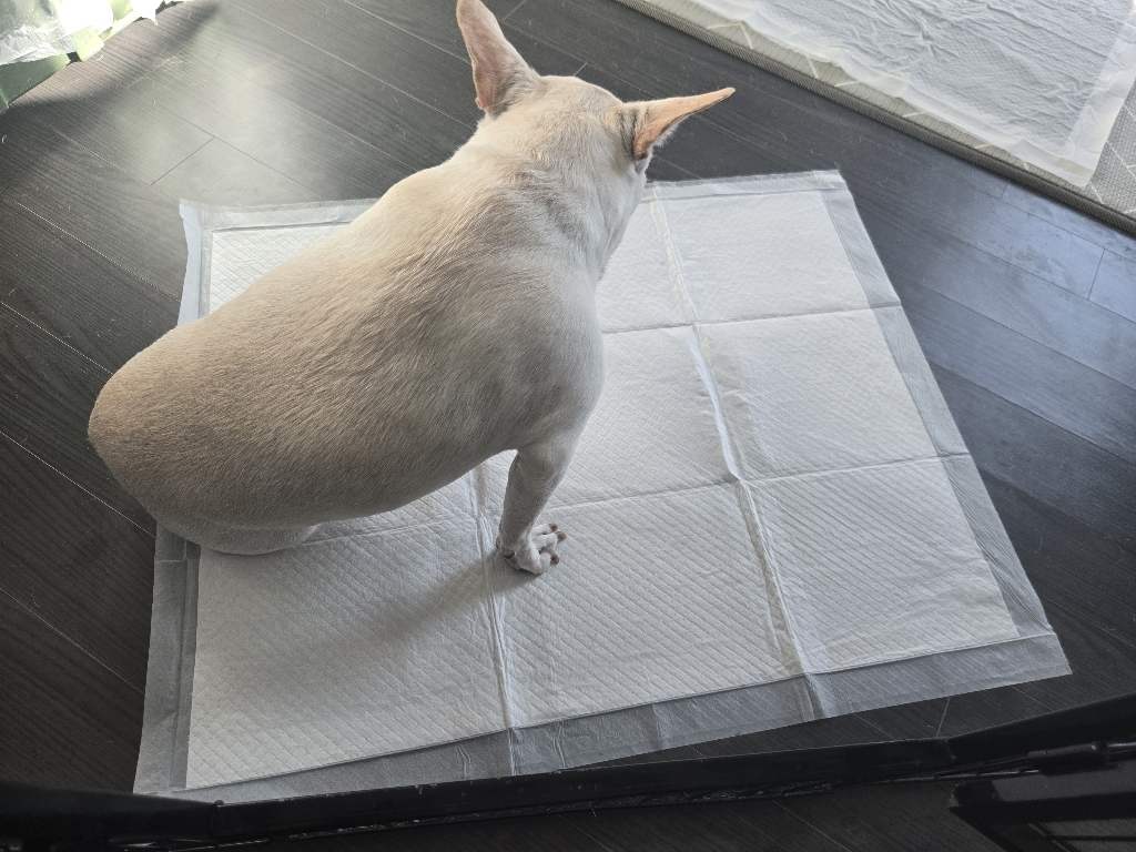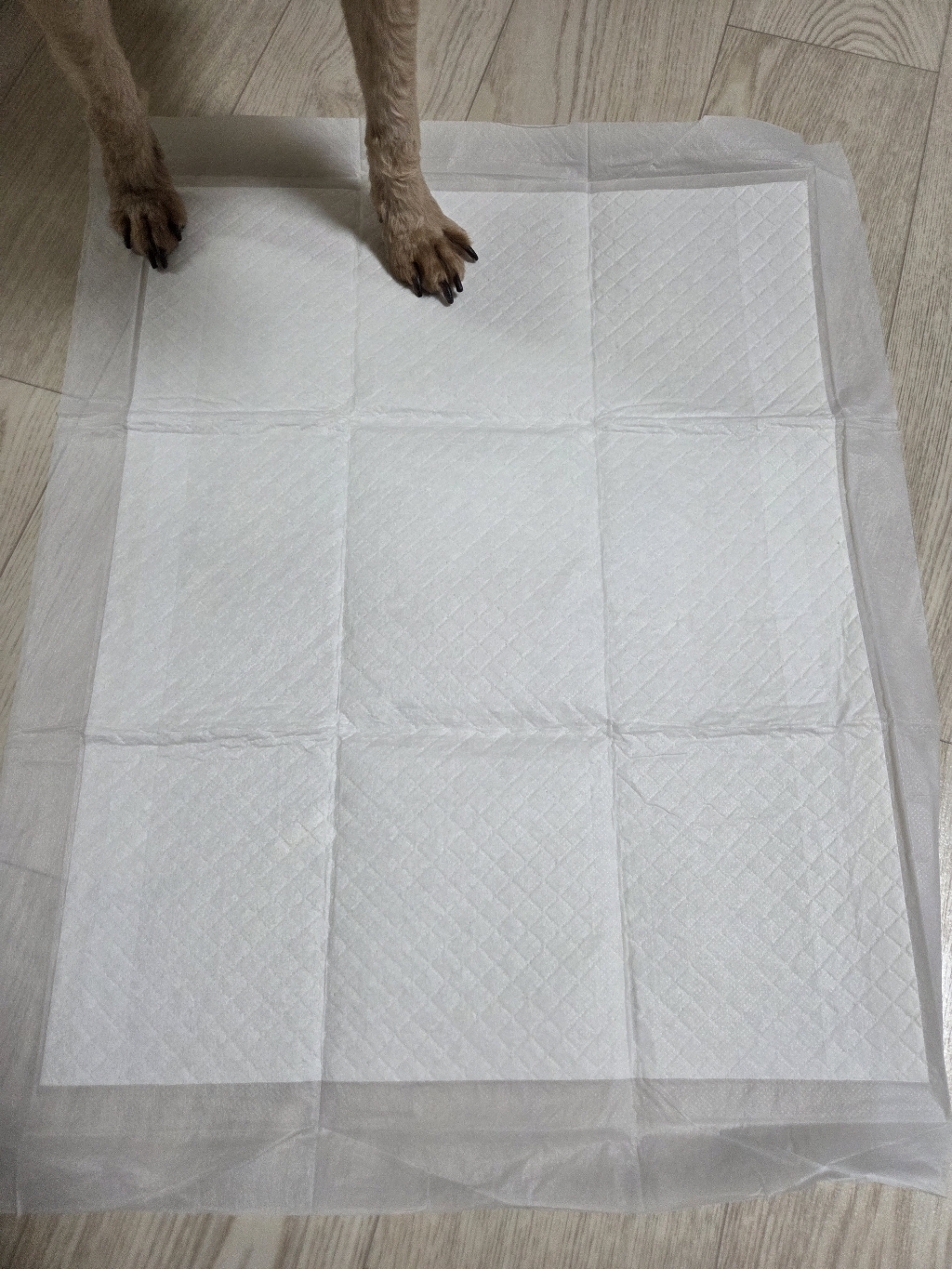 흡수력도 생각보다 괜찮아요. 한 번 소변을 보면 바로 흡수돼서 발에 묻는 느낌이 거의 없어요. 예전에 쓰던 얇은 패드는 소변이 퍼지면서 발바닥에 묻는 경우가 있었는데, 이건 그런 게 적어서 바닥 청소 부담이 줄었어요. 특히 밤에 배변하고 아침까지 그대로 있어도 역류 느낌이 크지 않아서 안심이 돼요.