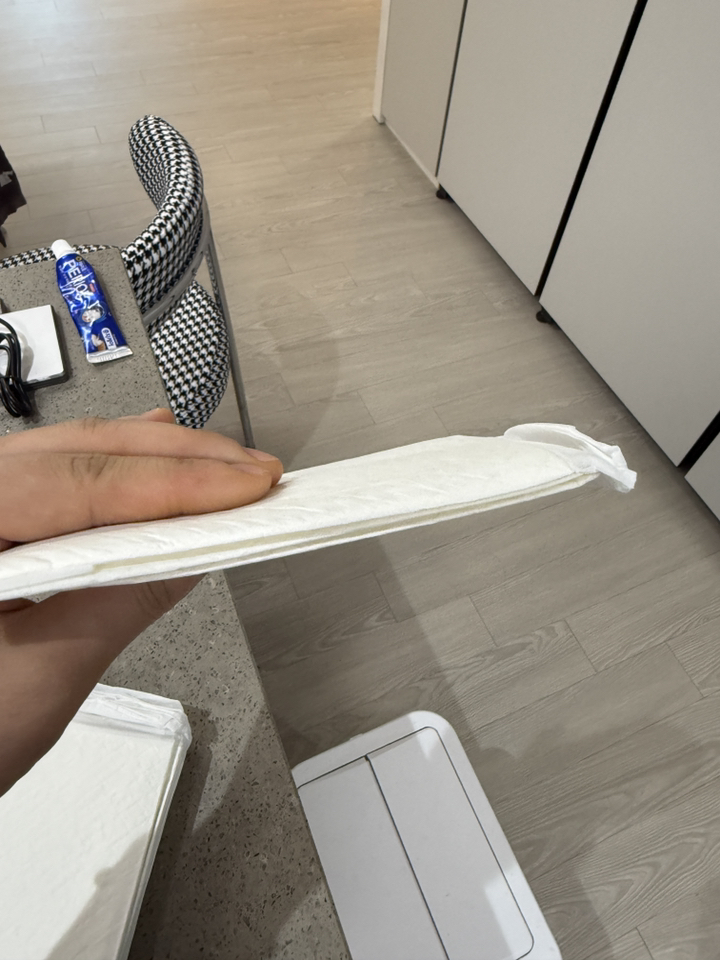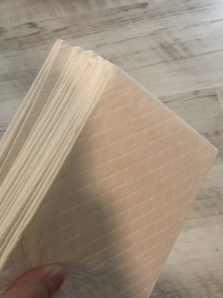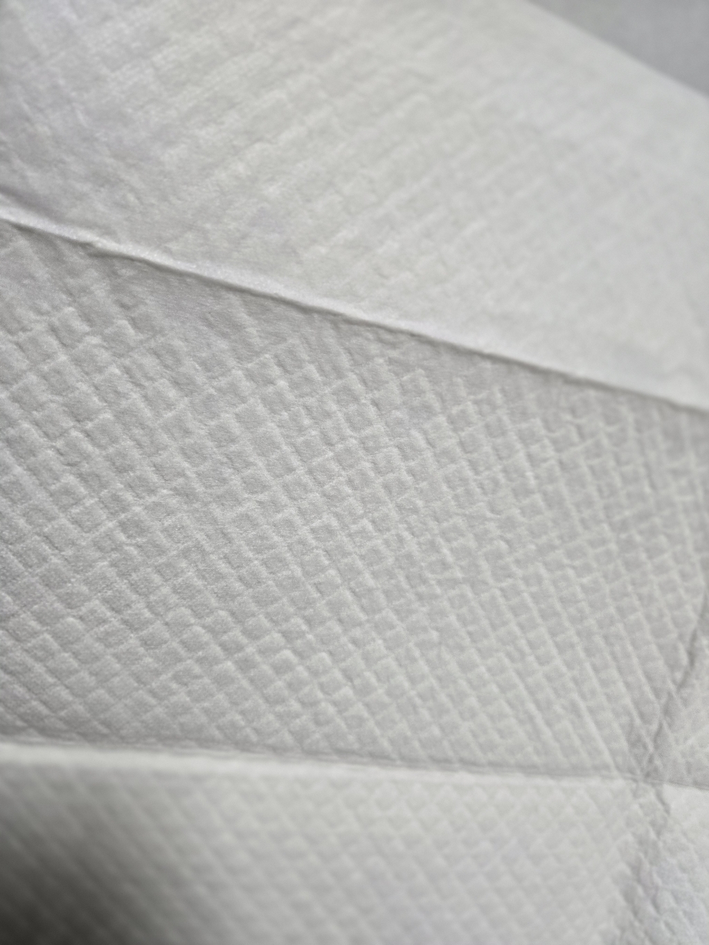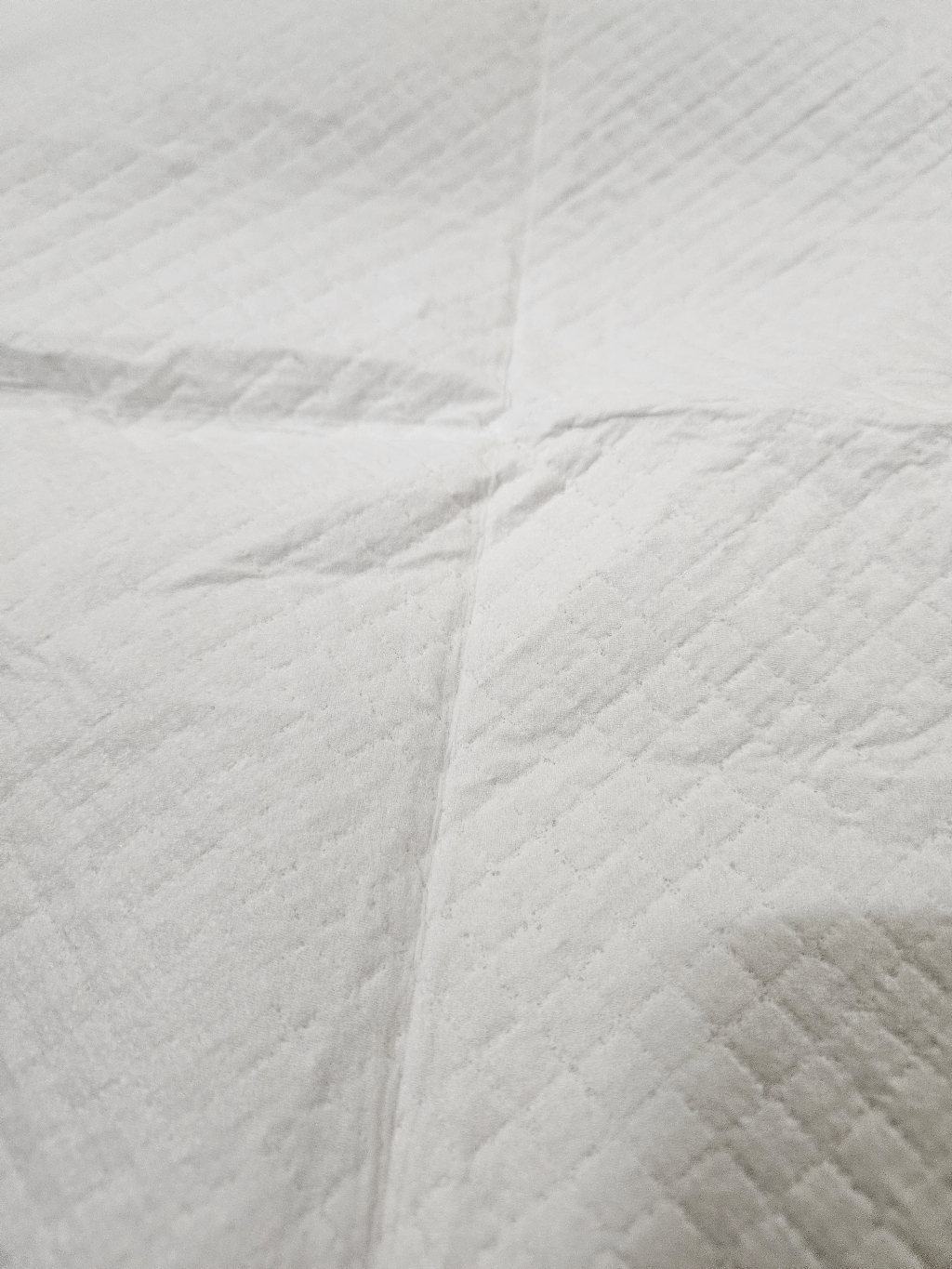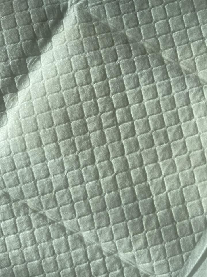 우선 패드 두께감이 너무 얇지도, 괜히 두꺼워서 잘 안 마르는 느낌도 아니라 딱 적당합니당! 손으로 만져봤을 때 부드럽고 패드 전체에 흡수체가 골고루 퍼져 있어서 어느 부분에 실수하든 빠르게 흡수를 잘 해줘요