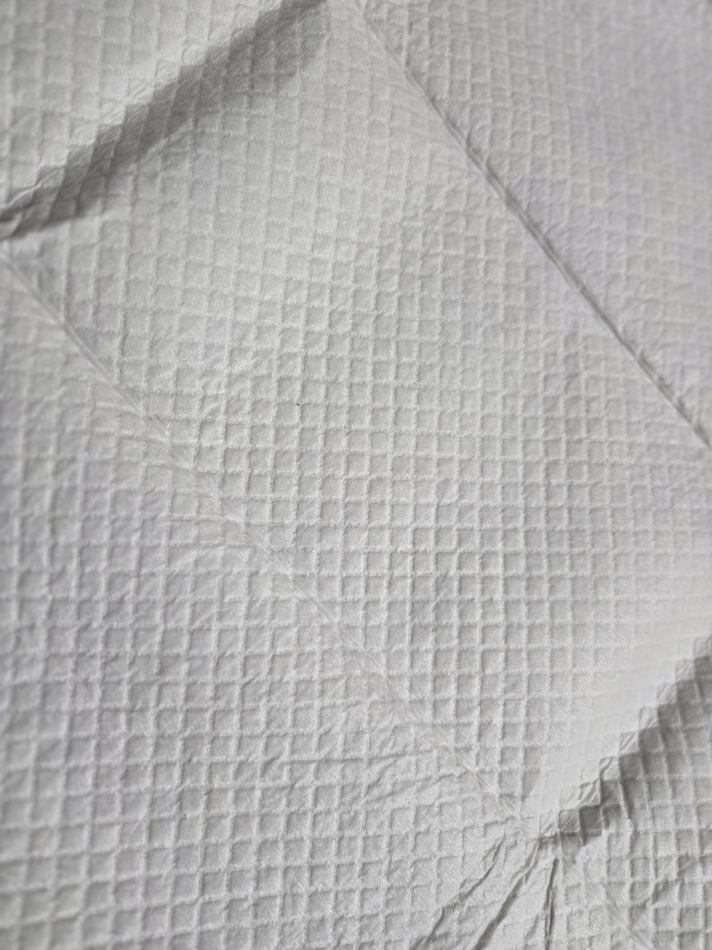 우선 얇은데도 불구하고 6중 레이어 구조라 그런지 흡수력이 생각보다 괜찮아요. 고흡수 SAP가 들어가 있어서 소변을 보면 바로 흡수돼서 발에 묻는 느낌이 거의 없어요. 엠보싱 처리도 되어 있어서 소변이 한쪽으로 몰리지 않고 골고루 흡수되는 점이 좋았어요.