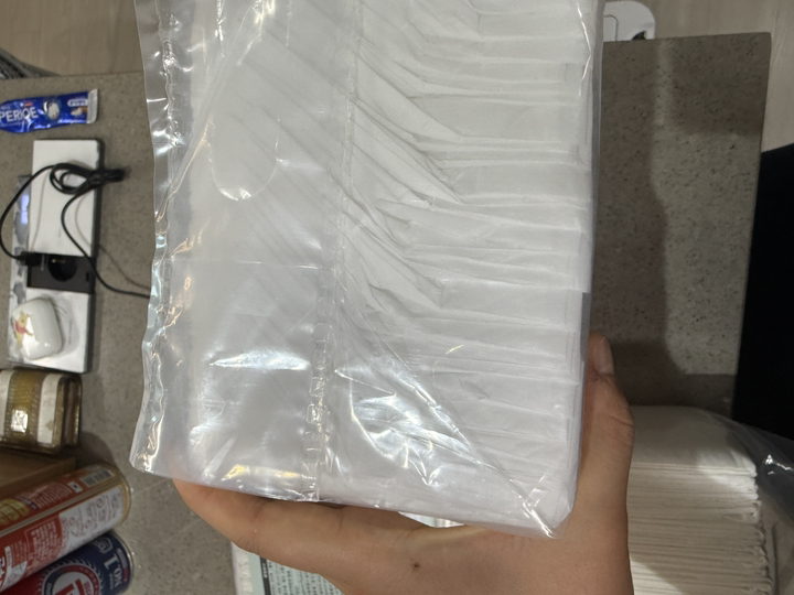 두께는 엄청 두껍진 않은데 그래서 오히려 접어서 버리기도 편함. 쓰레기통에 버릴 때 부피 많이 차지하지 않아서 그 점도 마음에 들었음. 대량으로 쟁여두기에도 부담 없고, 막 쓰기 좋은 진짜 ‘실속형’ 그 자체 느낌임.
