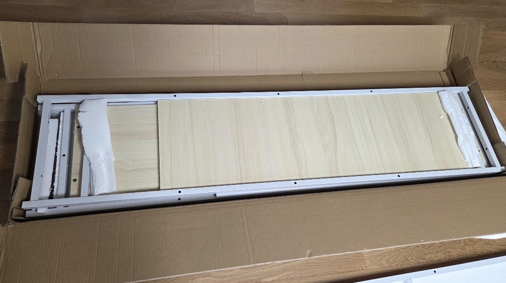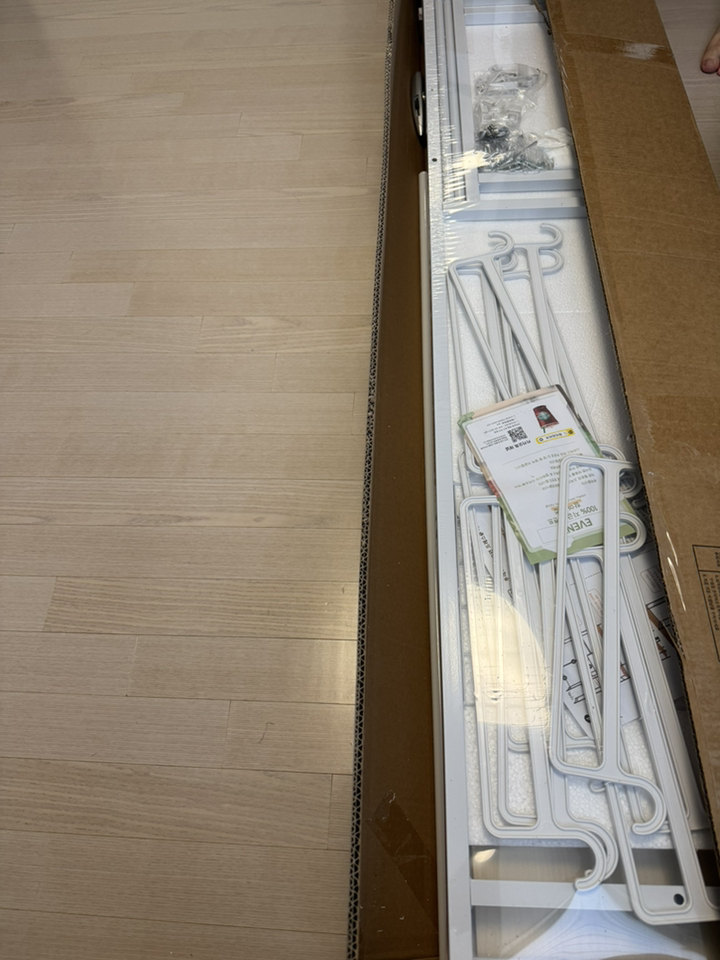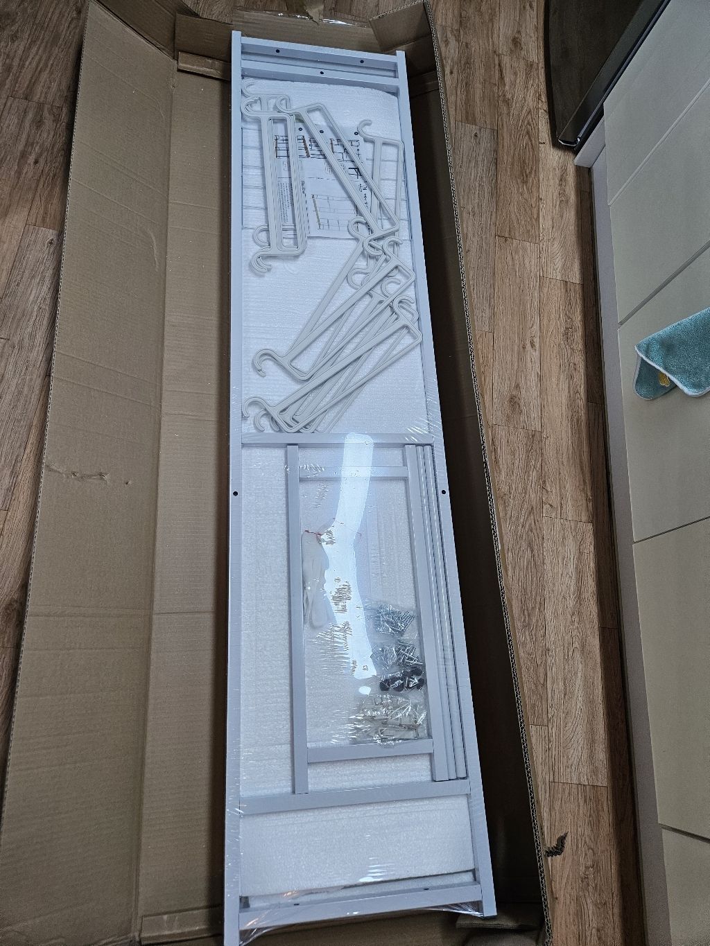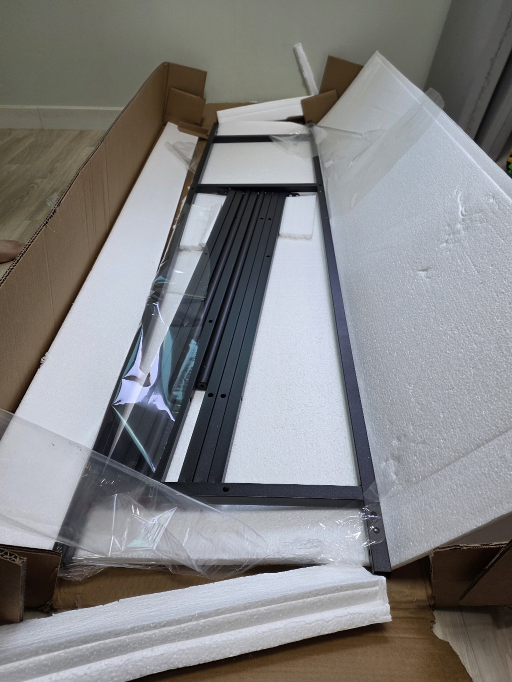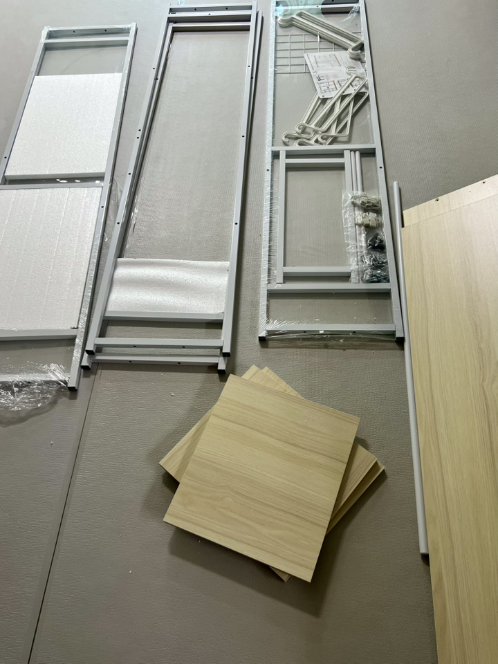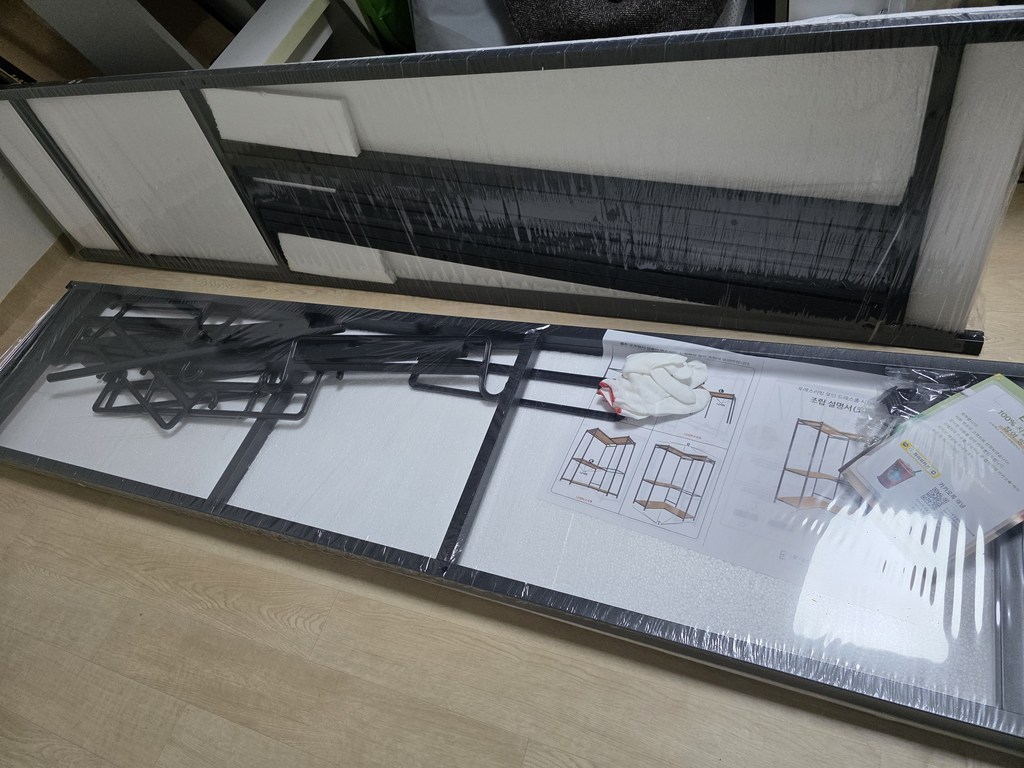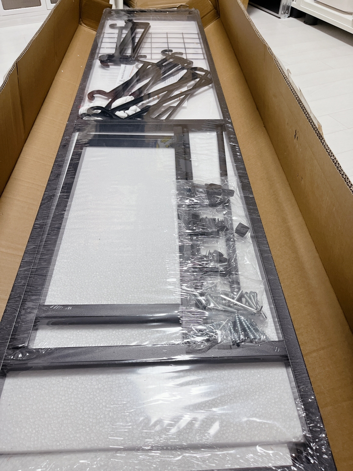 집에 가지고 왔을 때 무게가 좀 있느데 나무판이 있어서 그런 것 같아요. 개봉하고 나서도 너무 놀라워서 포장을 엄청 꼼꼼하게 했어요. 앞뒤 선반 모두 플라스틱 필름으로 잘 보호되어 있어요.스크래치나 구부러진 흔적 없이 큰 옷장 하나에 포장되어 있어서 정말 잘 산 것 같아요!