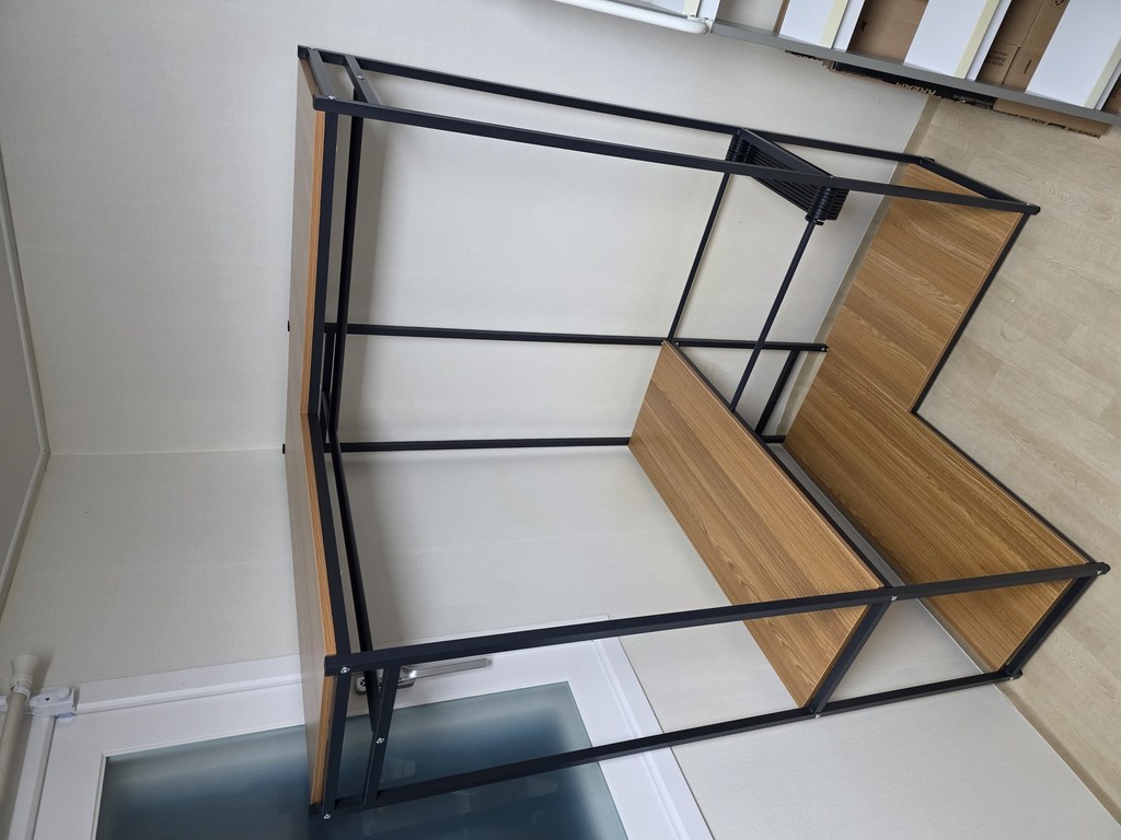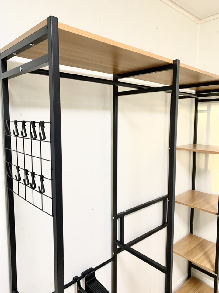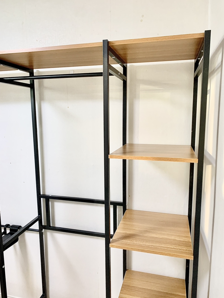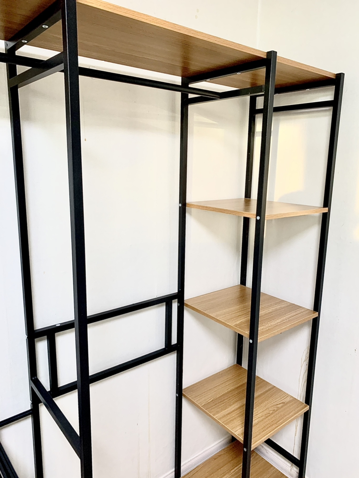 색상은 검정색 철제 프레임과 원목색 나무판자를 조합했어요.원래 집에 있는 옷장 화이트 위주로 되어 있었는데 이 검정색이랑 원목색이 너무 예뻐 보여서 이 색을 골랐는데 진짜 사진 처럼 너무 예뻐서 진짜 고급스러워 보이더라고요. 이 가격에 이렇게 예쁜 옷장을 살 수 있다니 정말 가성비가 좋은 것 같아요.