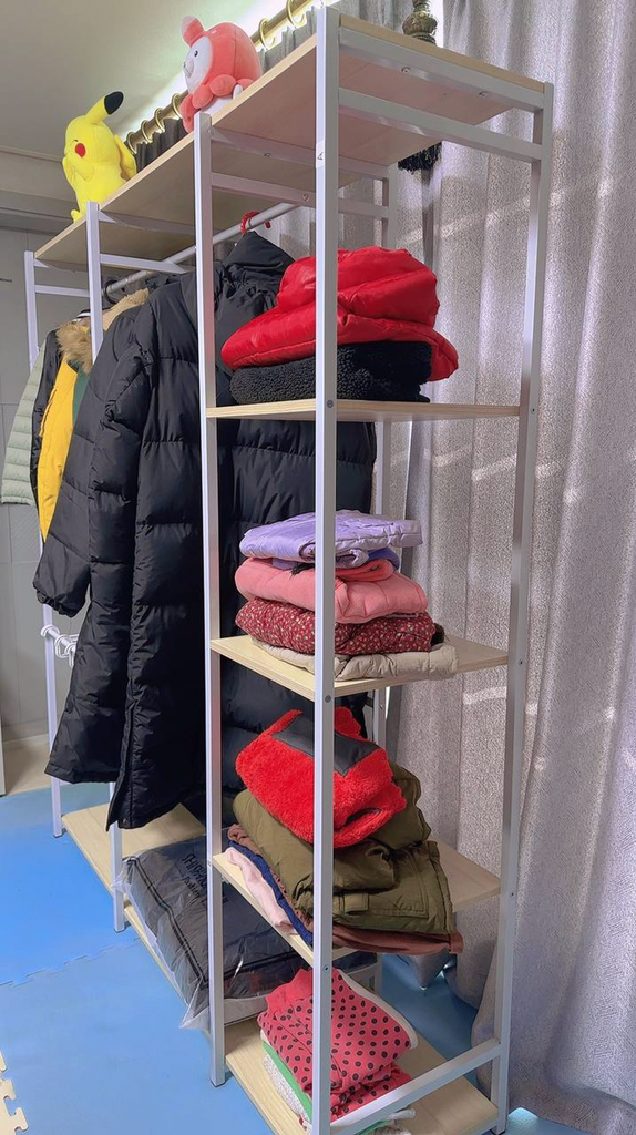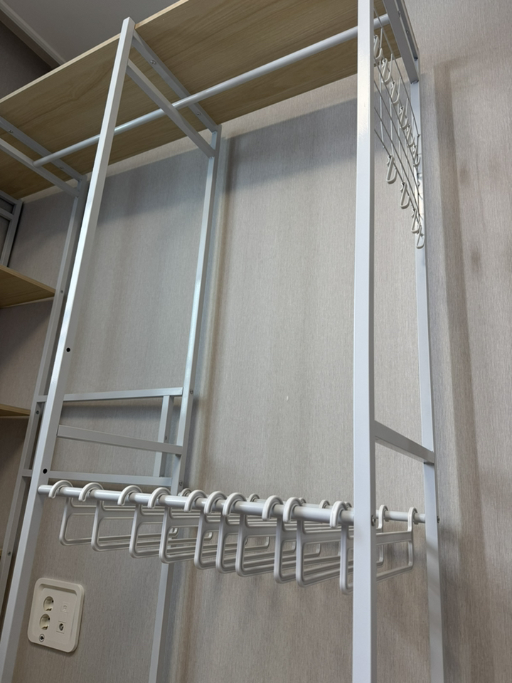 스틸 재질로 만들어져서 쉽게 흔들리거나 변형되지 않고, 방금 설치한 상태 그대로 깔끔하게 유지되였어요. 특히 옷이 무거울수록 걱정이 되는데, 이 행거는 옷을 가득 채워도 튼튼해서 안심하고 사용할수 있었어요.