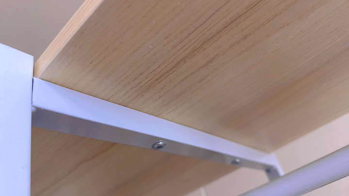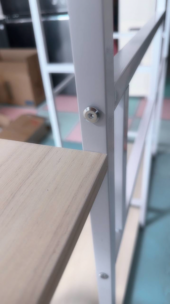 가장 걱정되는 거 부품이 선반에 잘 연결되거죠. 그런데 이게 부품 하나하나의 퀄리티까지 너무 좋아요. 선반과 널빤지에 딱 맞아요.그리고 선반을 튼튼하게 연결시켜 놓았기 때문에 선반 전체를 설치해도 흔들림 없이 튼튼해요. 연결 부품의 품질 문제로 헐거워지는 문제는 없어요. 높이를 조절할 수 있는 도구를 증정하고, 필요하다면 선반 밑에 설치해 조절을 도울 수도 있어요.