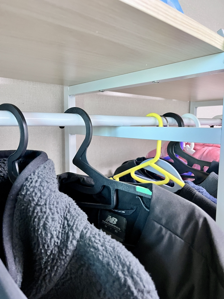 드레스룸이 넓지 않은데도 이 행거 하나로 많은 공간을 절약할 수 있었어요.