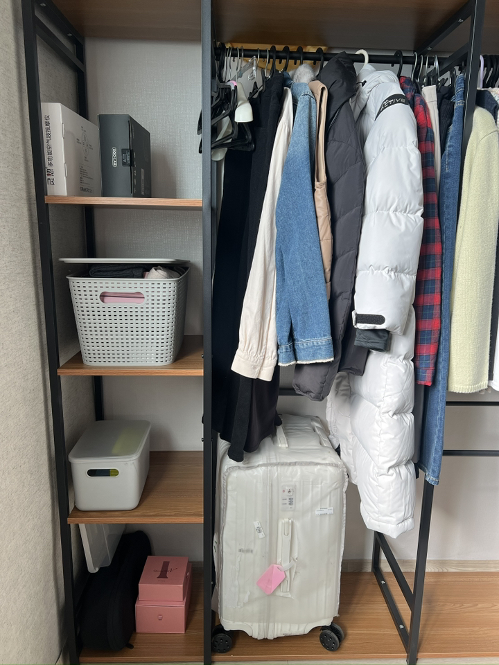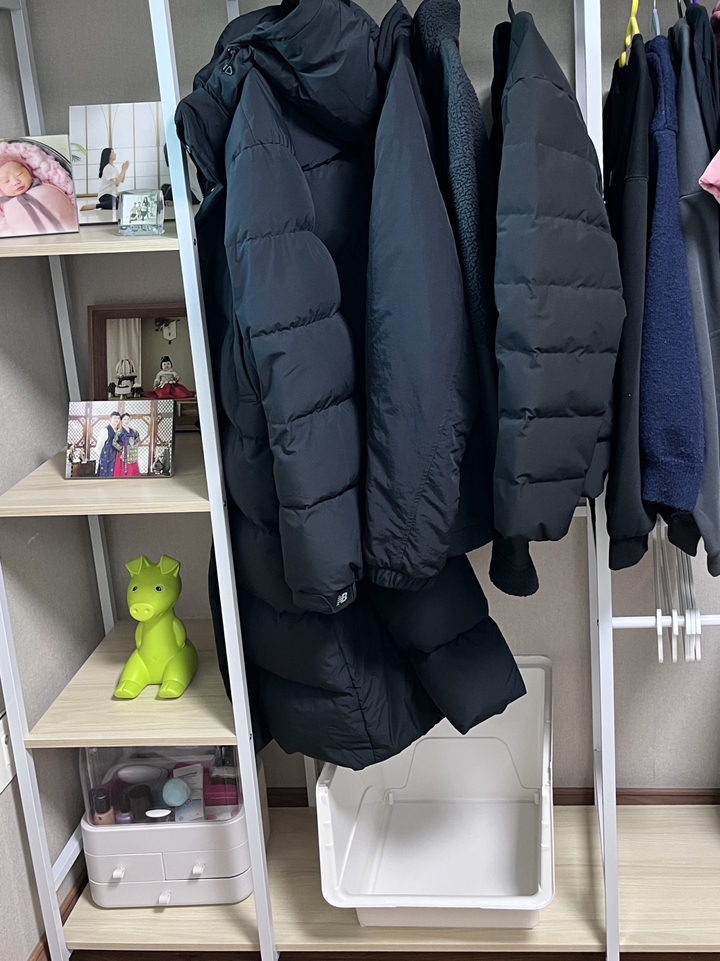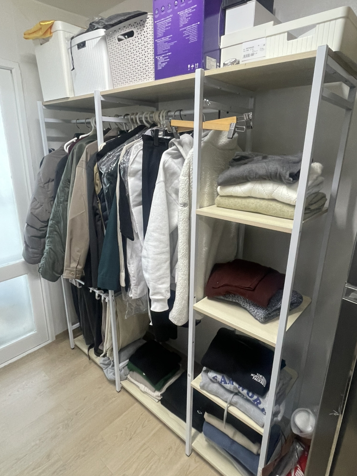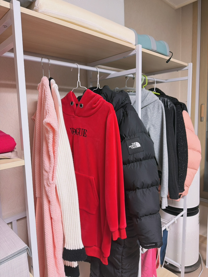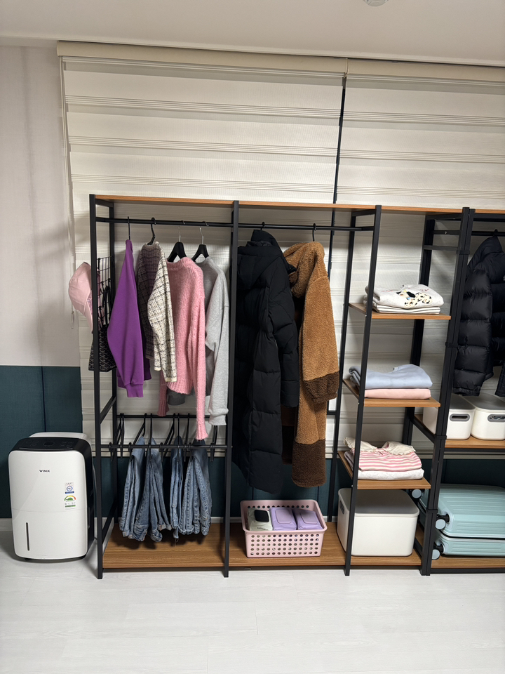 • 옷걸이 공간: 긴 롱패딩이나 원피스도 걸 수 있도록 넉넉한 높이로 설계되어 있어서 구김 없이 옷을 보관할 수 있었어요.