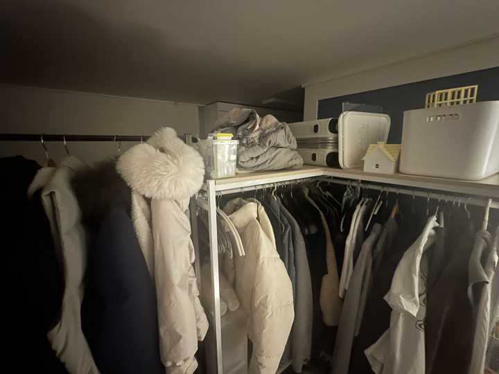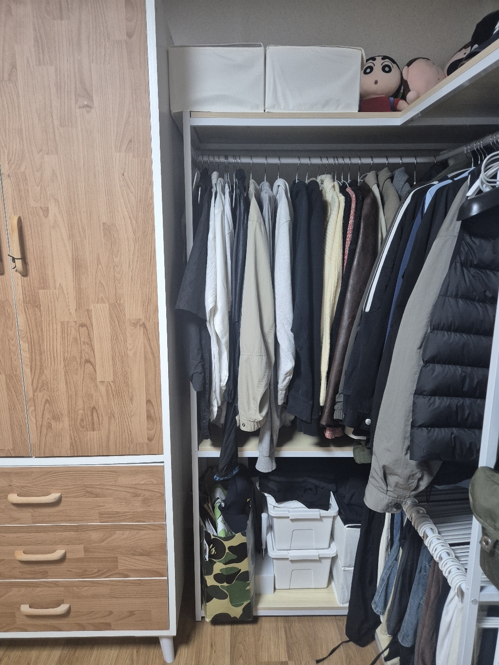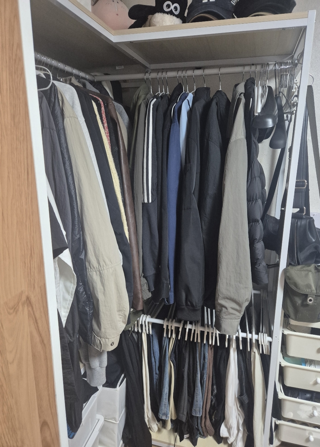 • 옷걸이 공간: 긴 롱패딩이나 원피스도 걸 수 있도록 넉넉한 높이로 설계되어 있어서 구김 없이 옷을 보관할 수 있었어요.