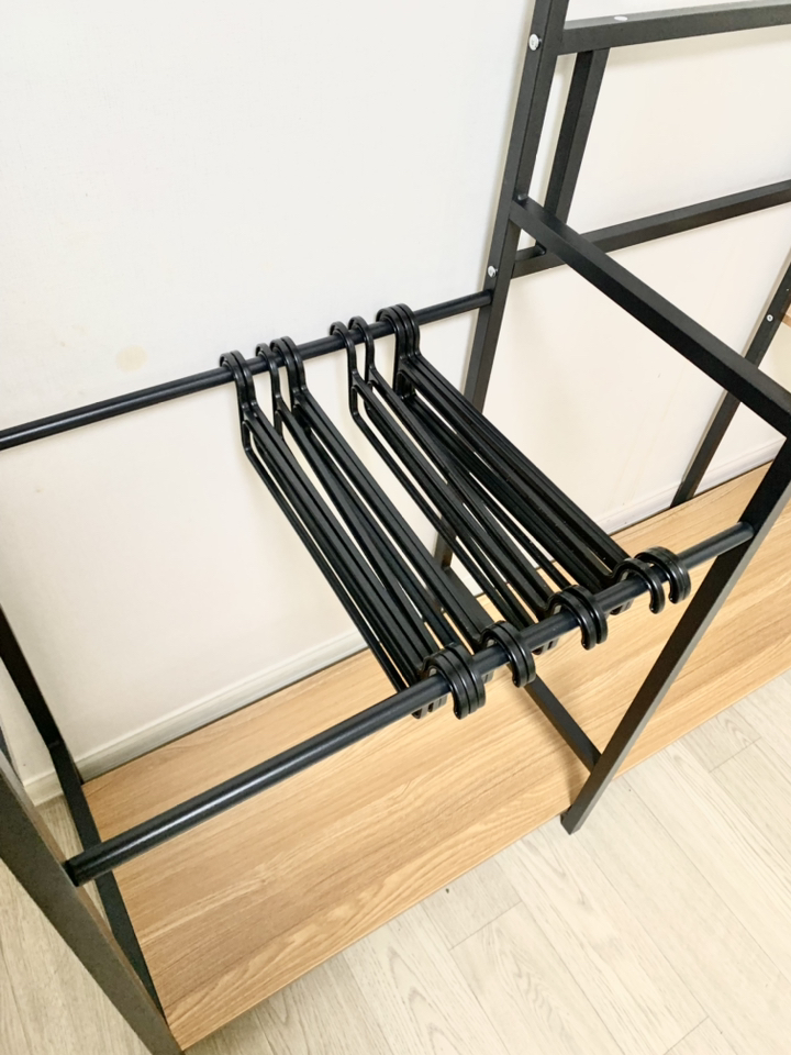 이 행거는 철재 소재로 만들어져서 굉장히 튼튼하다는 게 느껴져요.