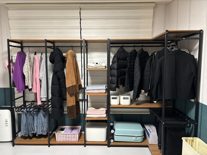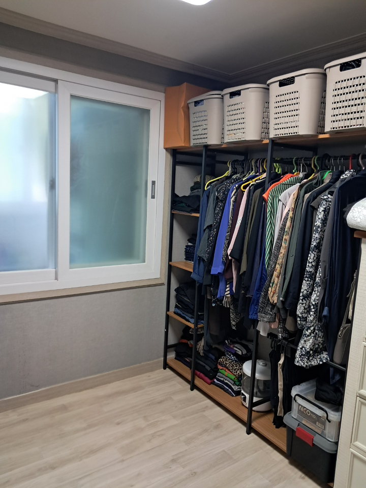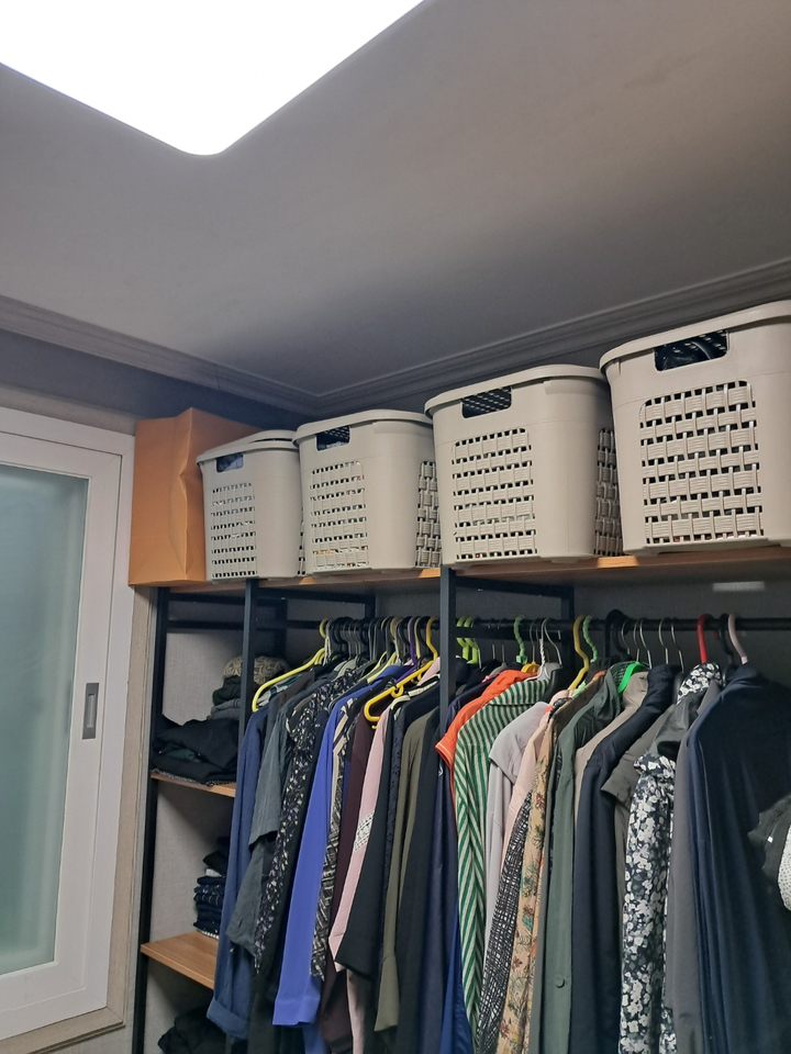 기존에는 일반 행거를 벽에 주루룩 세워두는 방식이라 동선도 좁아지고 보기에도 깔끔하지 않았습니다.