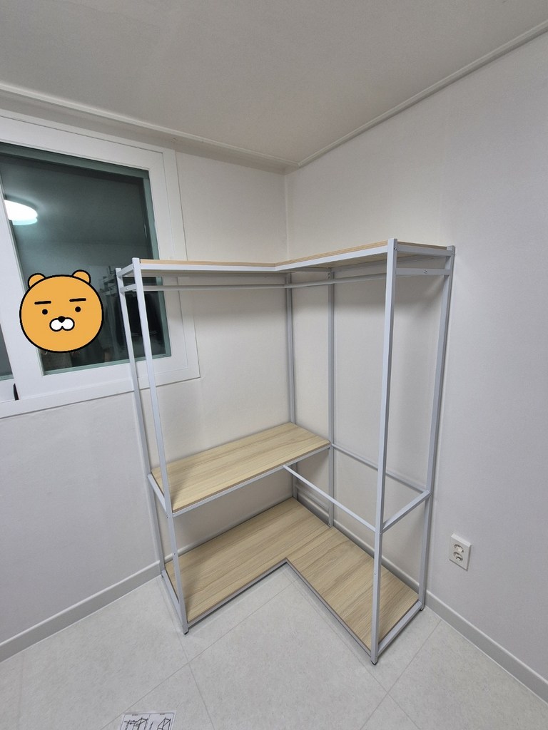 그래서 공간 활용을 극대화하려고 코너형 행거를 찾아보다가, 가격도 가장 합리적이고 디자인도 예쁜 이 제품을 발견해서 바로 주문하게 됐어요.