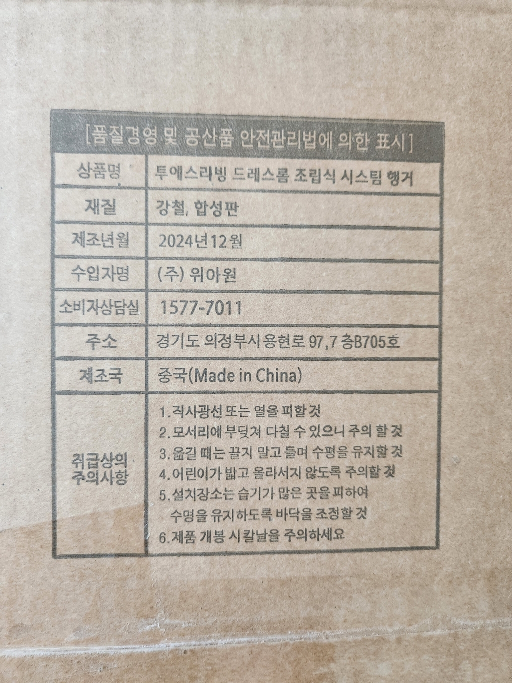 집 안의 옷 정리를 깔끔하게 하고 싶어서 행거를 구매했어요~