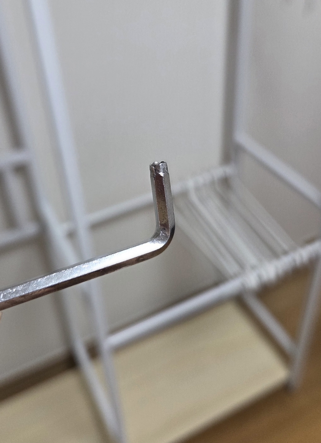 조립하고 보니 마지막 단계에서 철대에 검은색 볼트넣는게 하나 빠졌더라고요.
