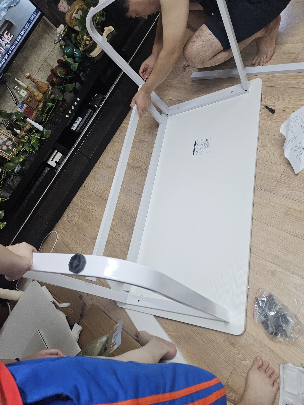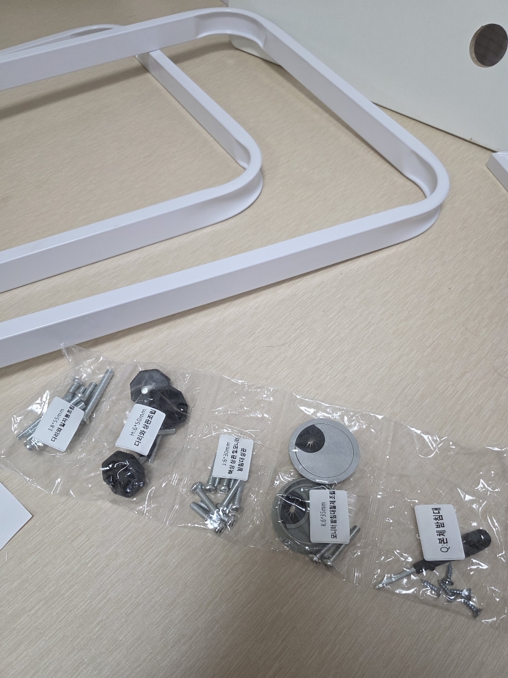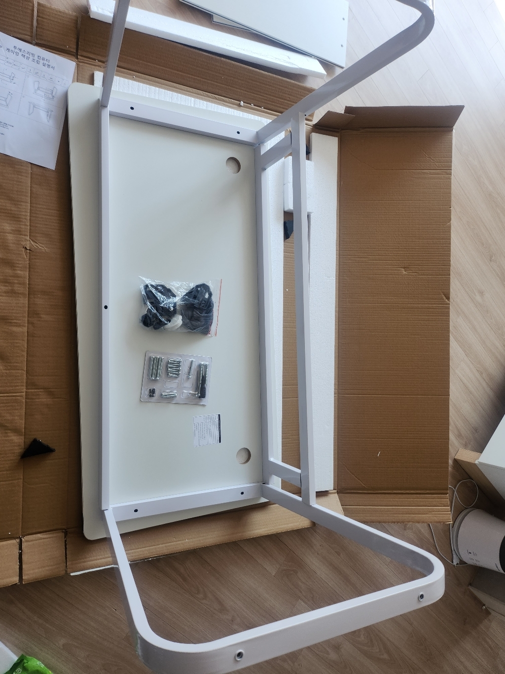 하고 맨처음 조립하다가 이부분을 알게되었네요. 그래서 책상을
