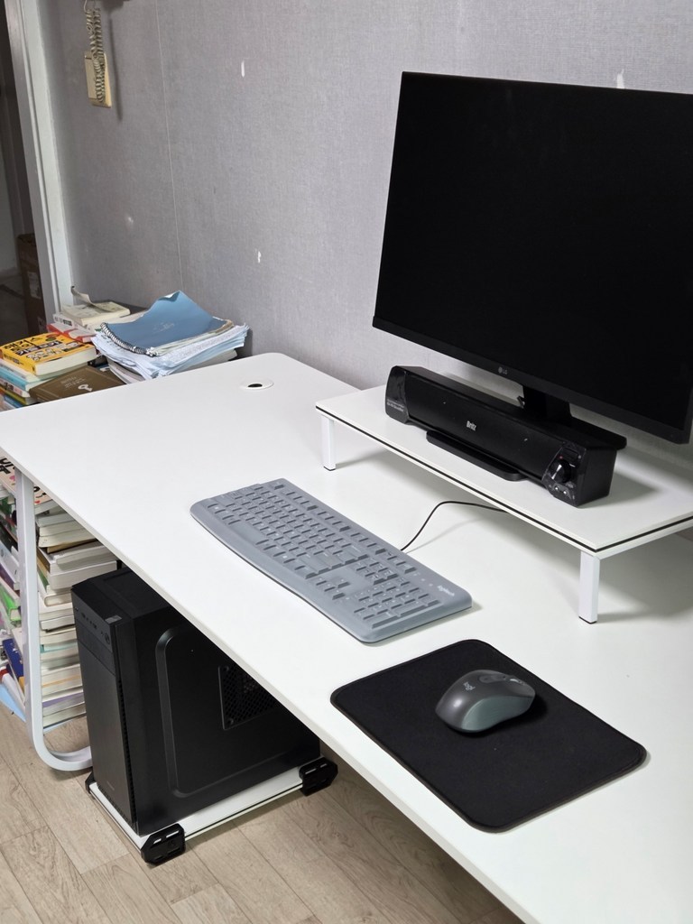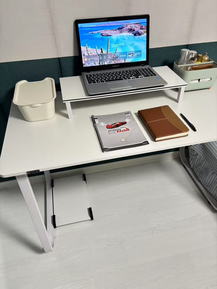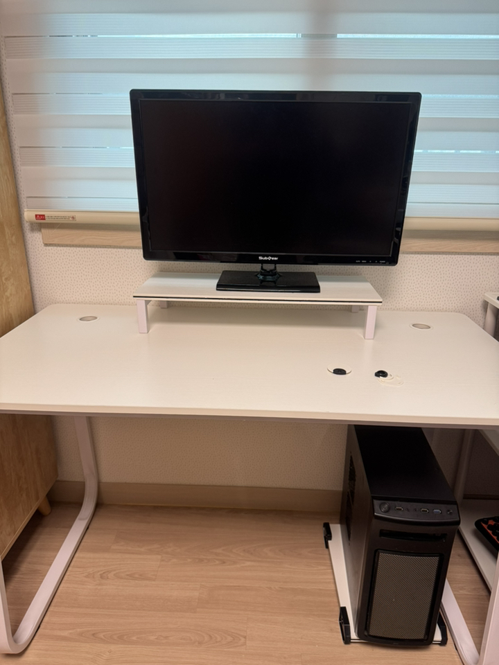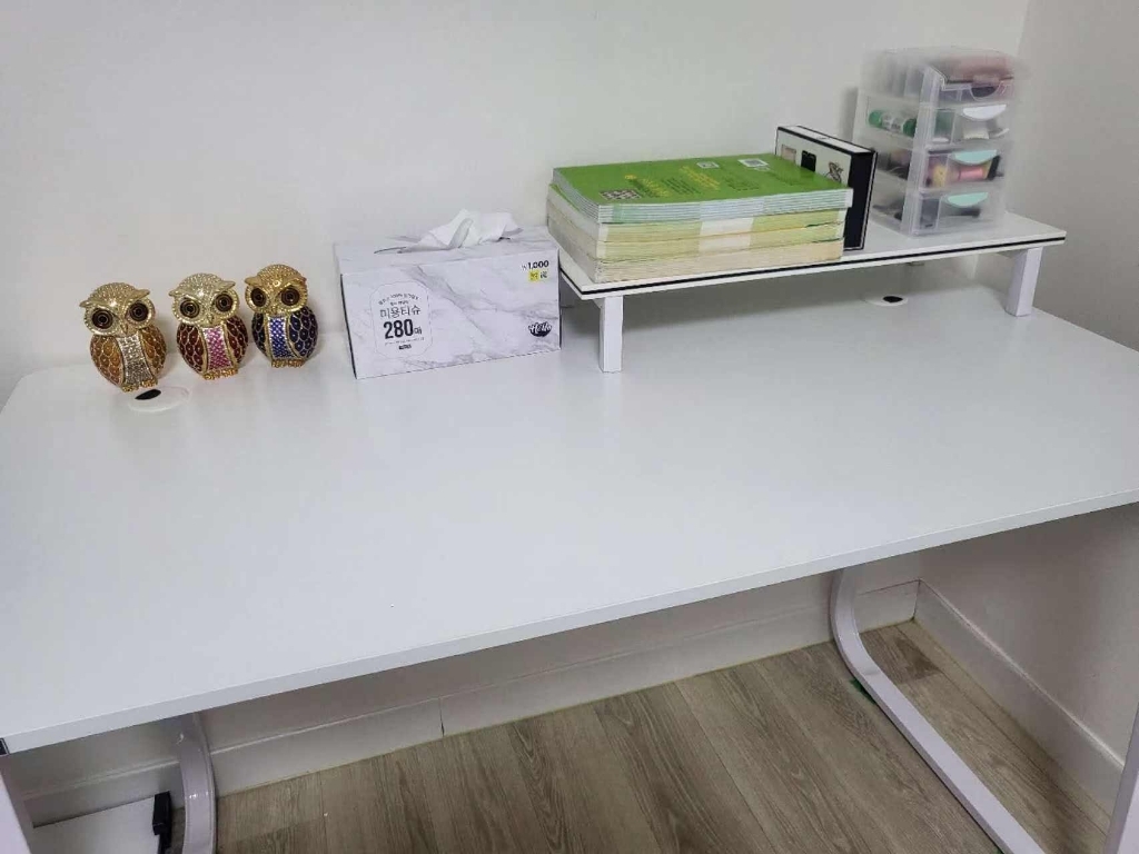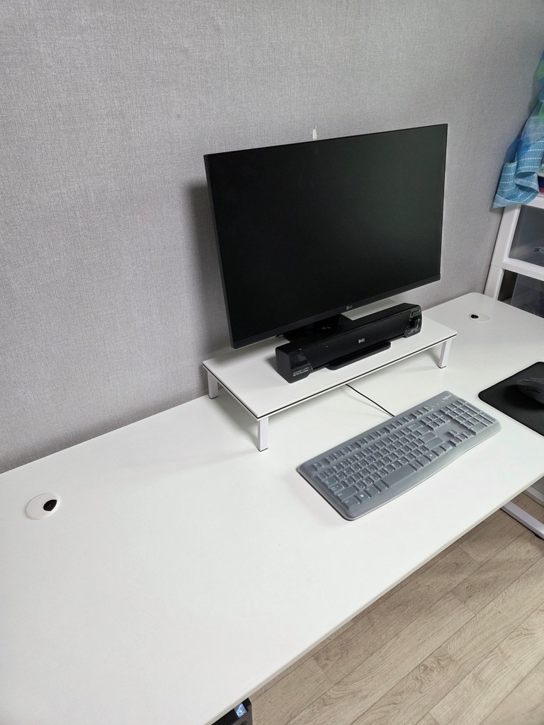 – 모니터 받침도 화이트고이고 컴퓨터 받침도 화이트여서 너무깔금하고 책상이라