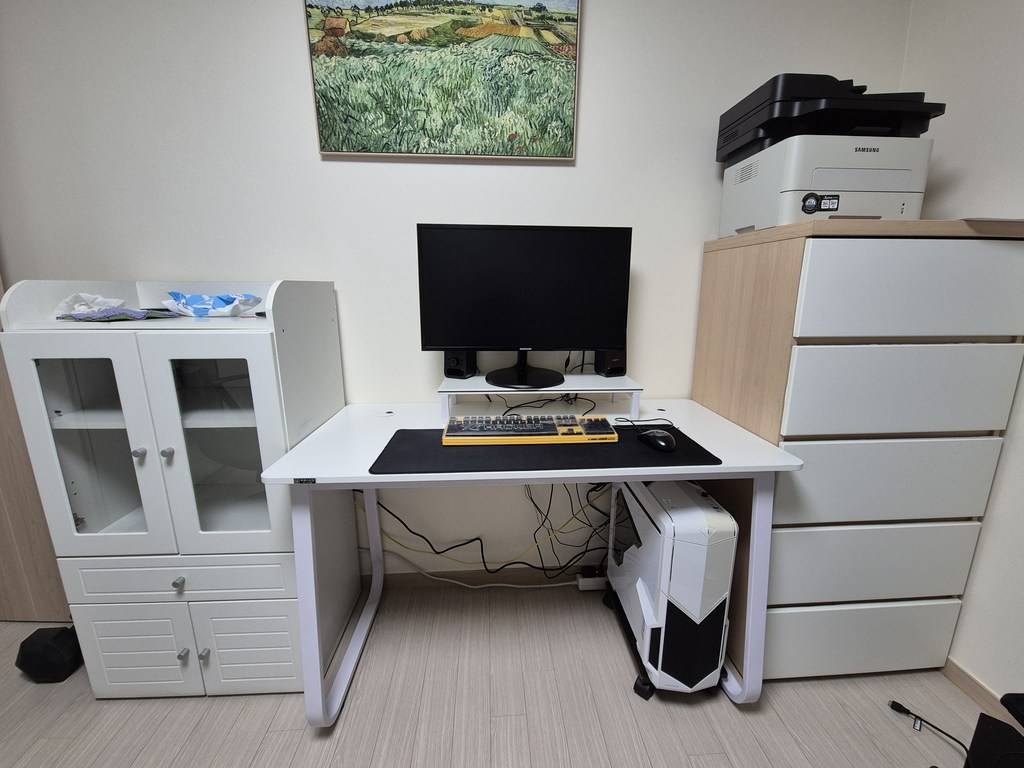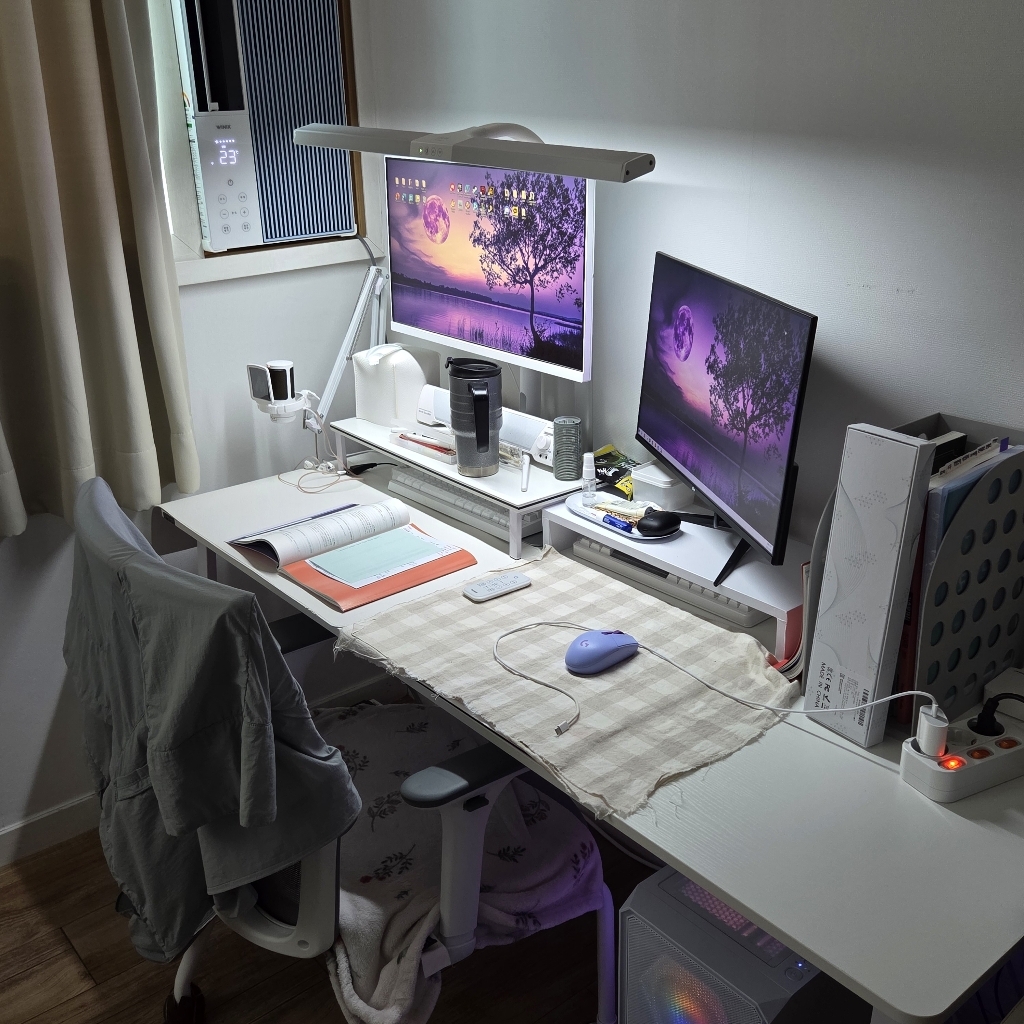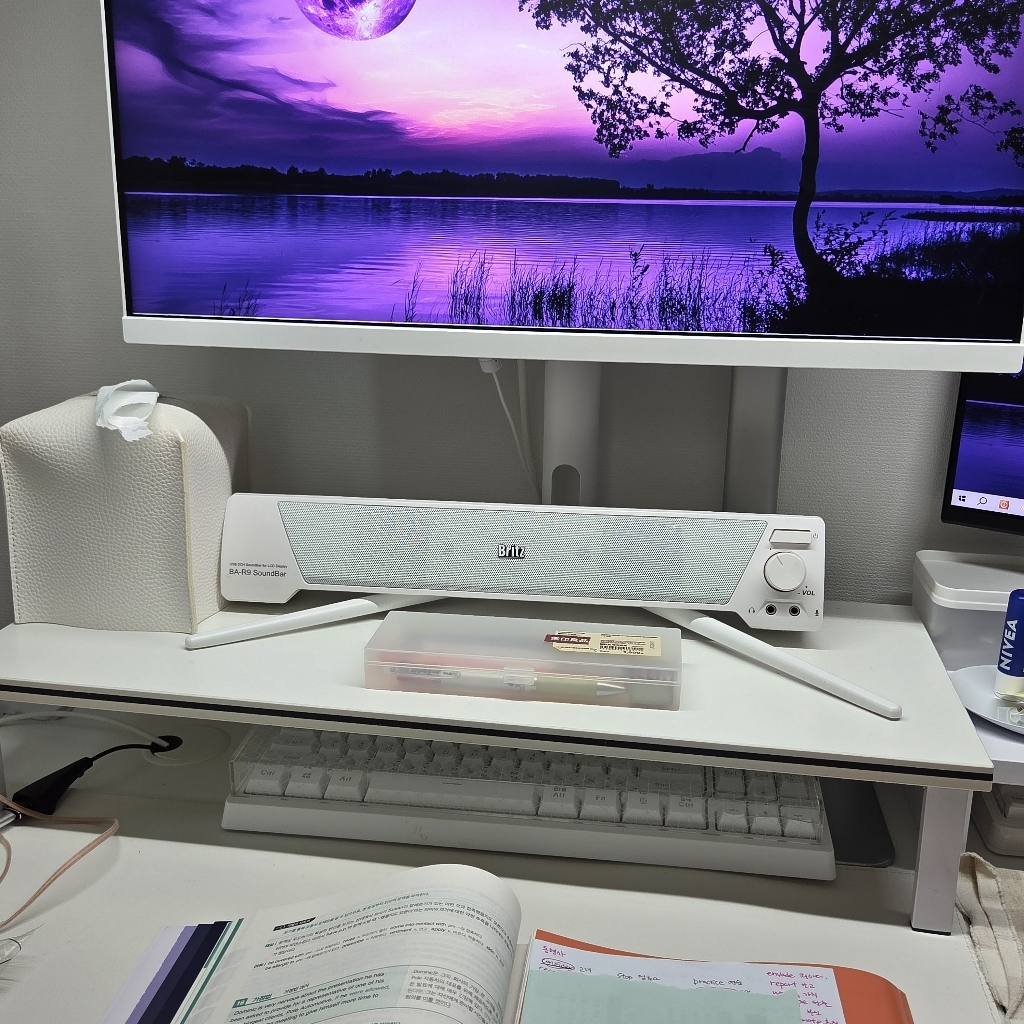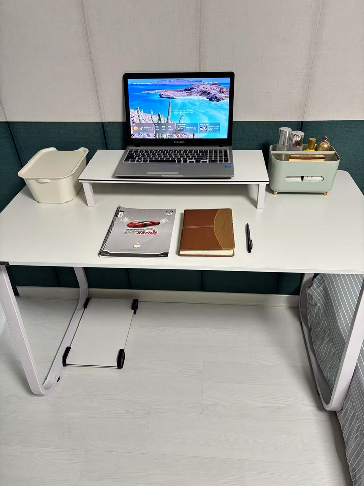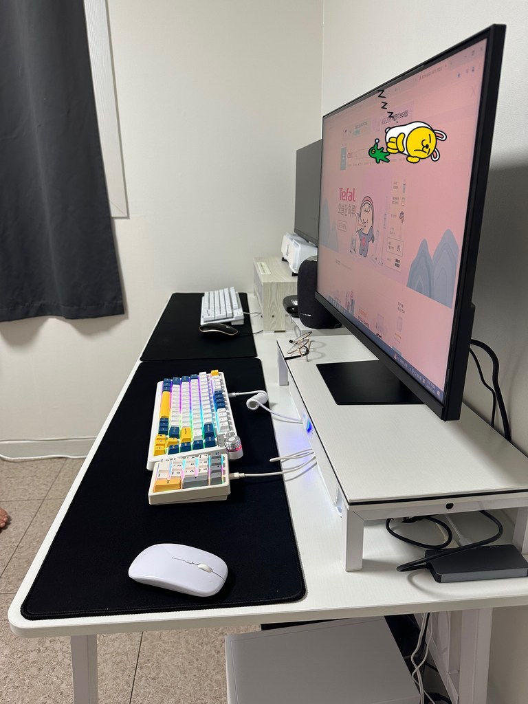– 모니터 받침도 화이트고이고 컴퓨터 받침도 화이트여서 너무깔금하고 책상이라