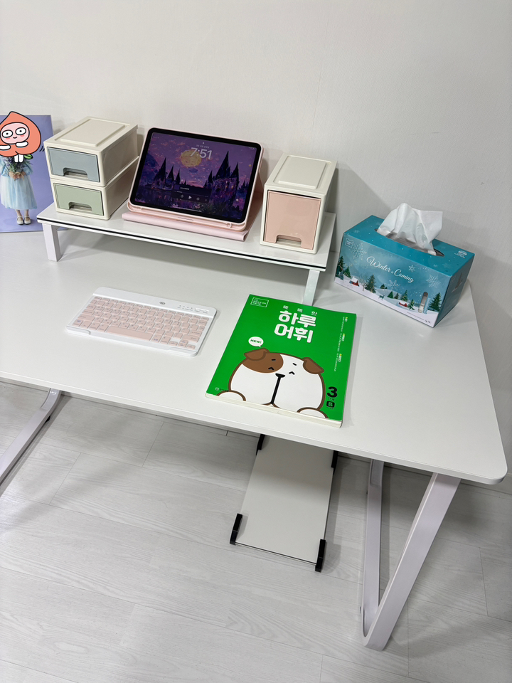 고가 제품처럼 마감이 아주 고급스럽진 않지만, 학생용·가정용으로 쓰기에는 충분히 만족스러운 퀄리티예요. 공부용과 컴퓨터용을 겸해서 사용할 책상을 찾고 계신다면 가성비 좋은 선택이라고 생각합니다.