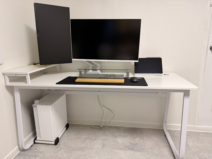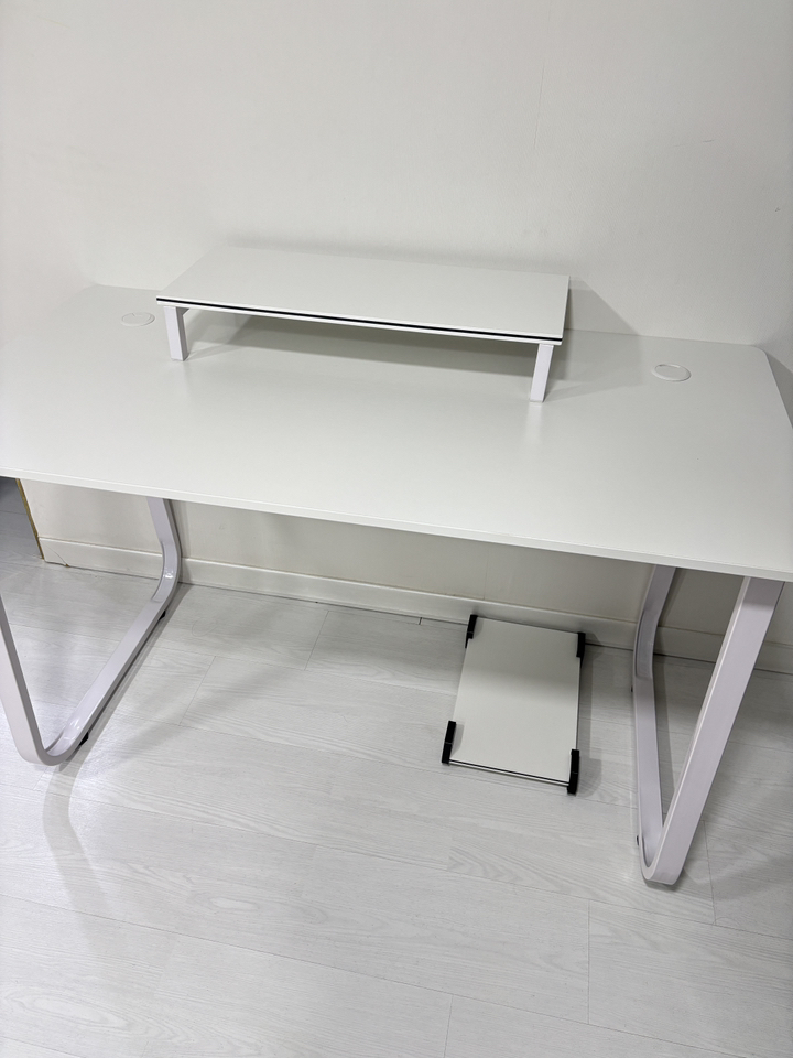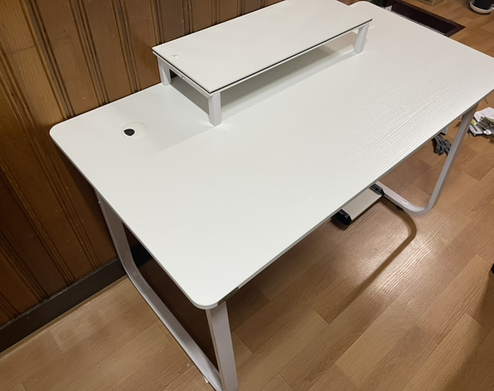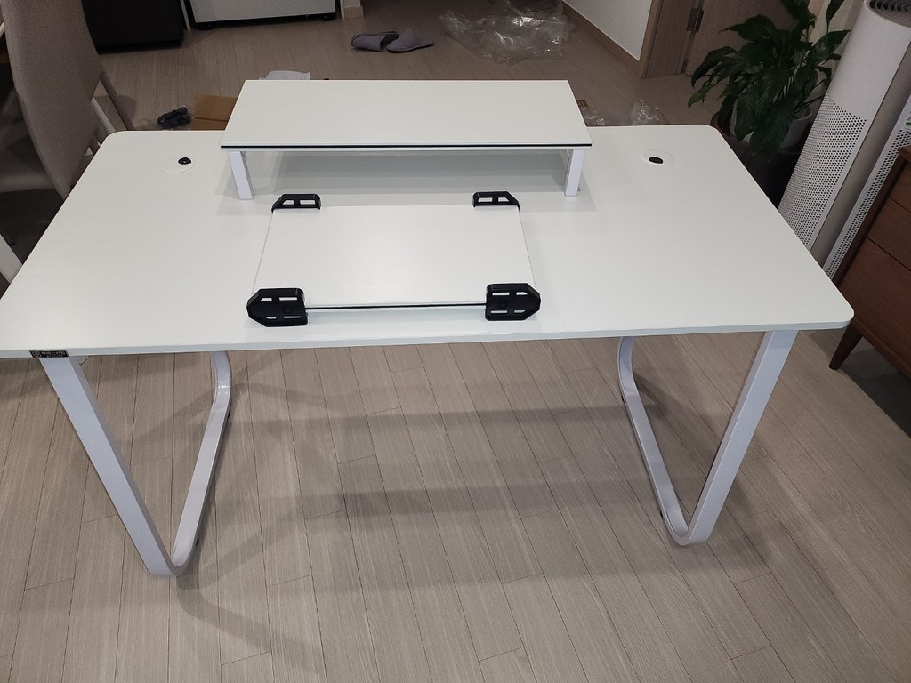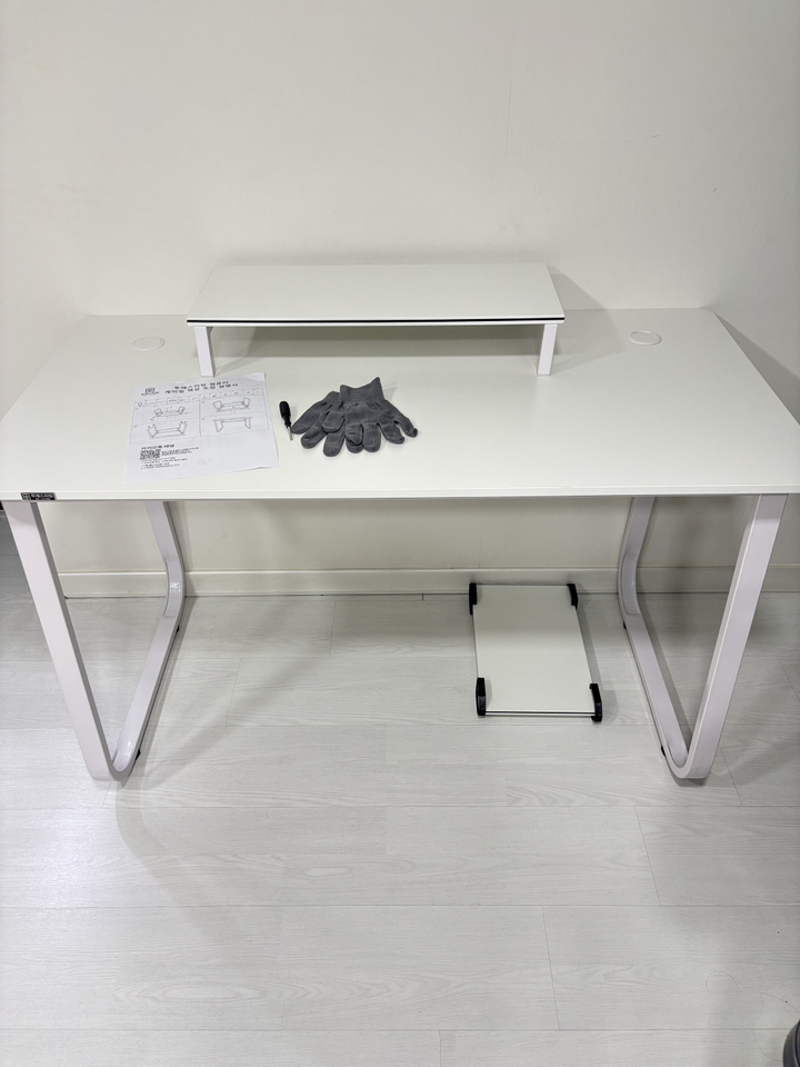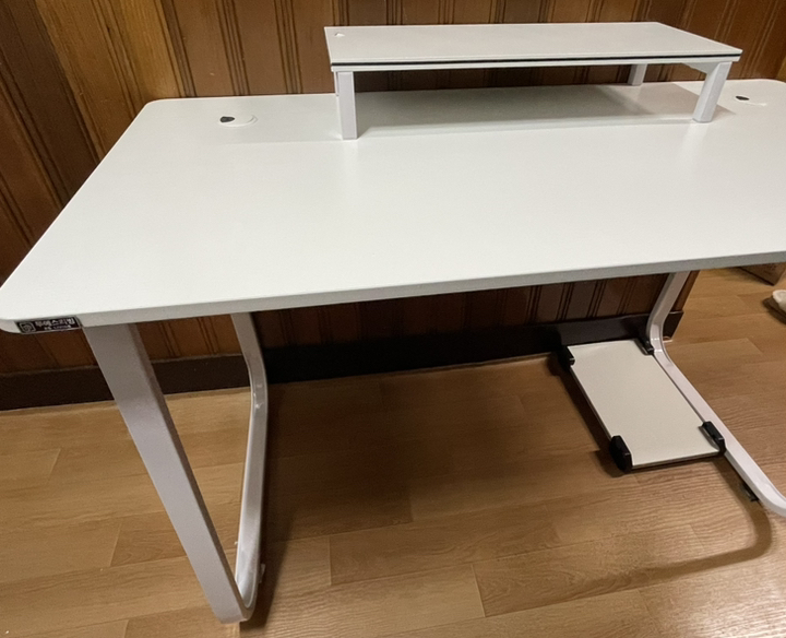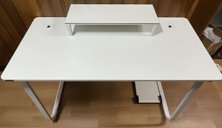 Hello, I bought a Tues Living 2S LIVing multipurpose desk gaming computer desk today. While looking for a neat white desk, I bought this one because it’s reasonably priced and looks simple and sturdy without complicated legs. For me, it’s for gaming, so it’s more important to be strong. The legs are made of iron and the top is made of wood. Other gaming desks are said to be difficult to assemble, so I was worried that this would be difficult, but it was easy!! And the top plate came well with a clean one. It’s good to have a monitor and body support. Overall, I’m satisfied. I thought a lot about it before I bought it, but it wasn’t a good idea.