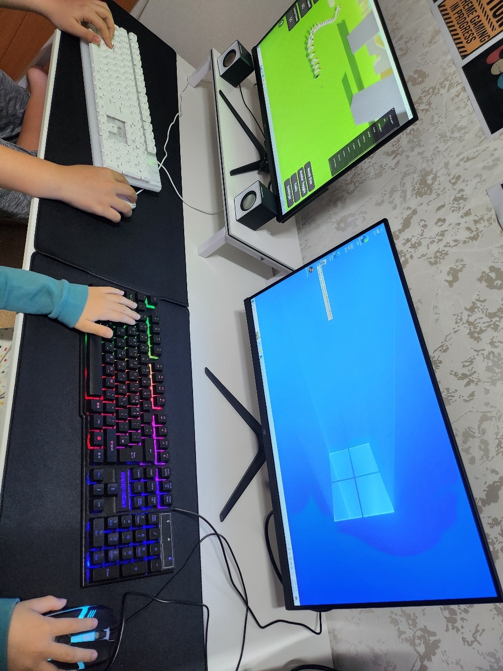 게이밍 컴퓨터 책상 1600 사이즈, 두명앉아서 사용할 컴퓨터 책상필요하여 구매하게되었습니다..