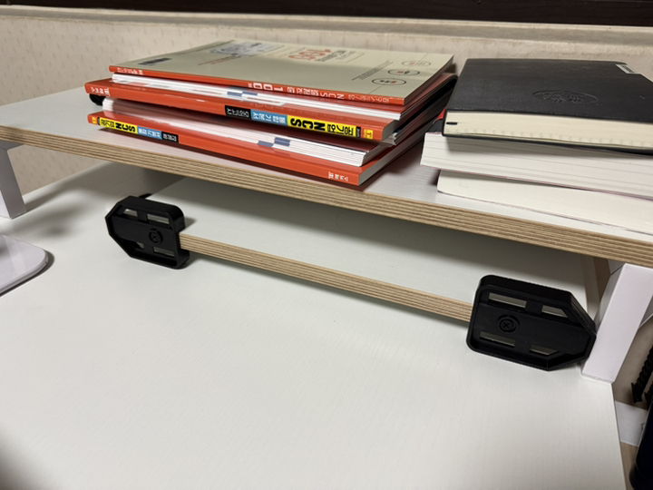 구성품도 모니터 받침과 컴퓨터 본체 받침 같이 주셨는데 저는 따로 올려둘 본체는 없어서 가방이랑 이것저것 올려두는 받침대로 쓰고 있어요. 맨바닥에서 굴러다니지 않고 딱 가방자리로 지정된 느낌이라 이것도 좋은거같아요 ㅎㅎ