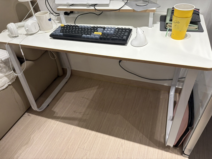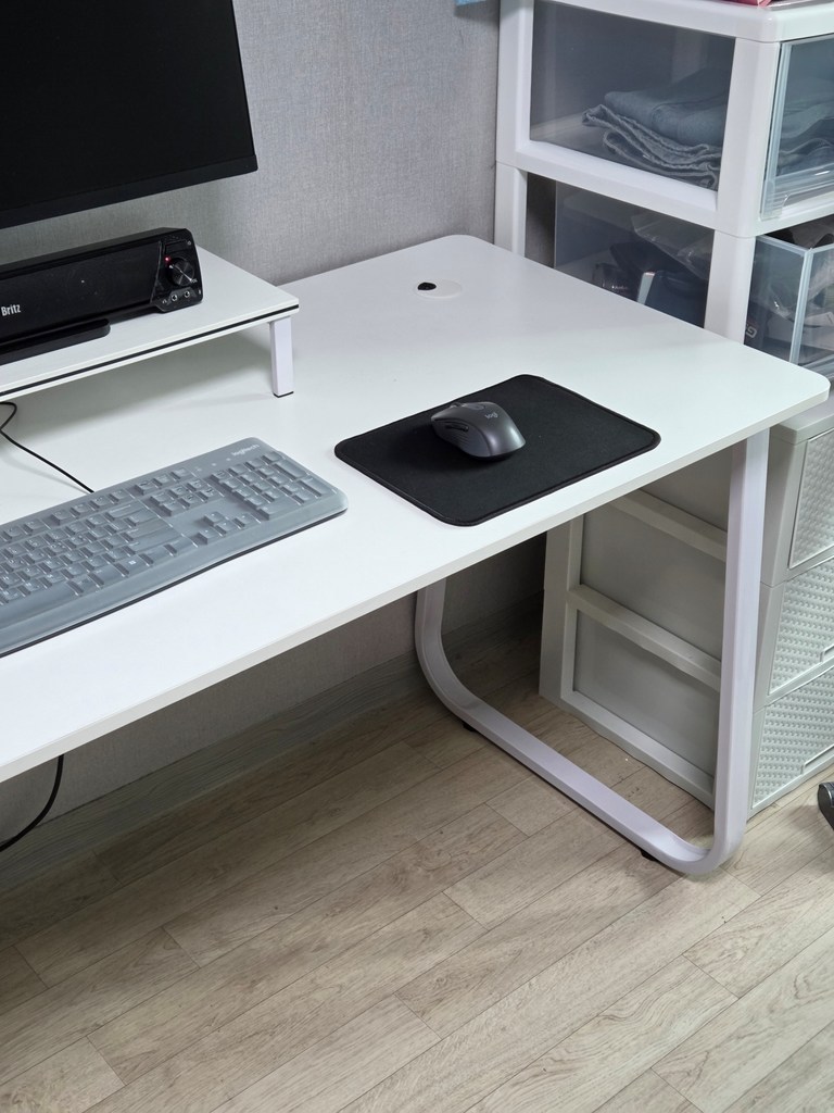 다만, 아쉬운 점은 배송받았을 때 책상 하단 쪽 일부에 까짐이 있어서 살짝 아쉬웠어요ㅠㅠ 오래쓰려고 했는뎅..사용에는 큰 지장이 없지만, 새 제품을 받는 기분이 조금 덜해진 건 사실이에요. 그래도 전체적인 품질과 사용성은 가격 생각하면 충분히 추천할 만한 책상이에요.