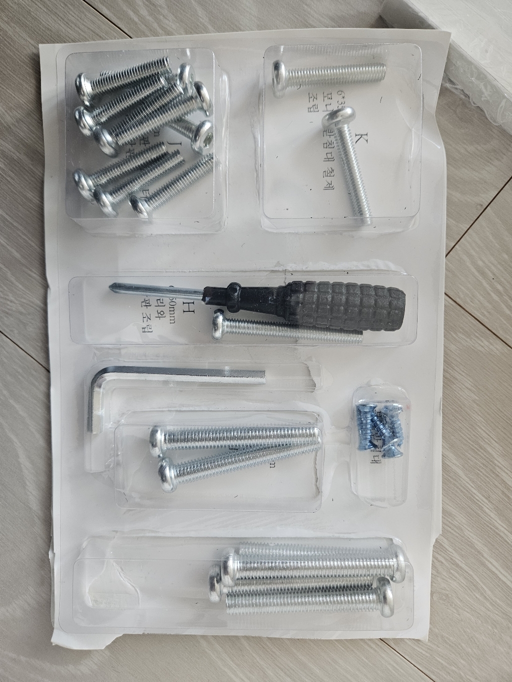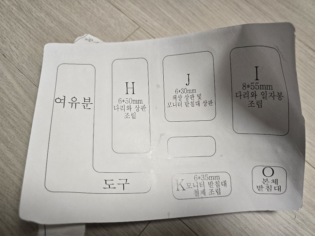 – 나사/피스에 다 어디용도인지 적혀있는데, 저거 잘못