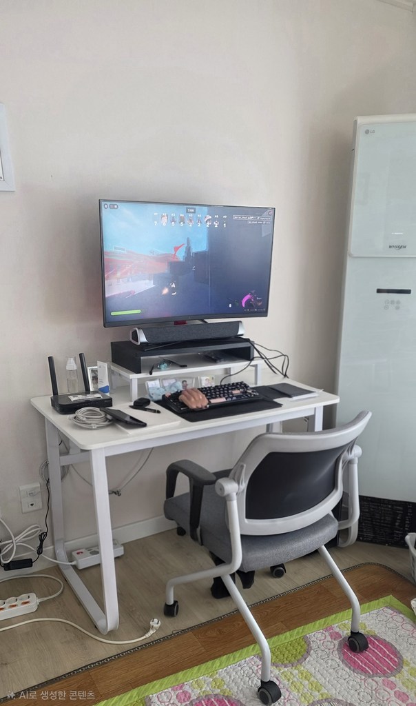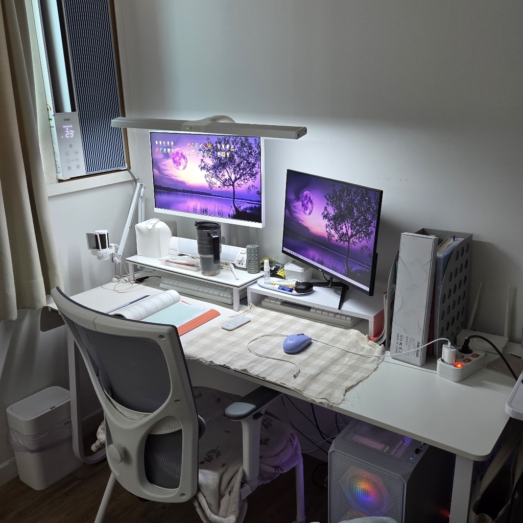 깔끔하고 모던한 디자인이라 게이밍용뿐만 아니라 공부나 작업용으로도 잘 어울리는 책상이에요. 집 어느 공간에 두어도 인테리어에 크게 방해되지 않고, 특히 화이트톤과 심플한 구조 덕분에 세련된 분위기를 더해줘요.