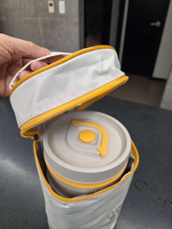 그리고 전용 가방이 포함되어 있다는 것도 장점이에요. 그냥 통만 들고 다니는 것보다 훨씬 안정적이고, 디자인도 깔끔해서 회사에서 꺼내도 부담 없어요. 안쪽이 단열 처리돼 있어서 전체적으로 깔끔하게 보관되는 것도 만족스러웠습니다.
