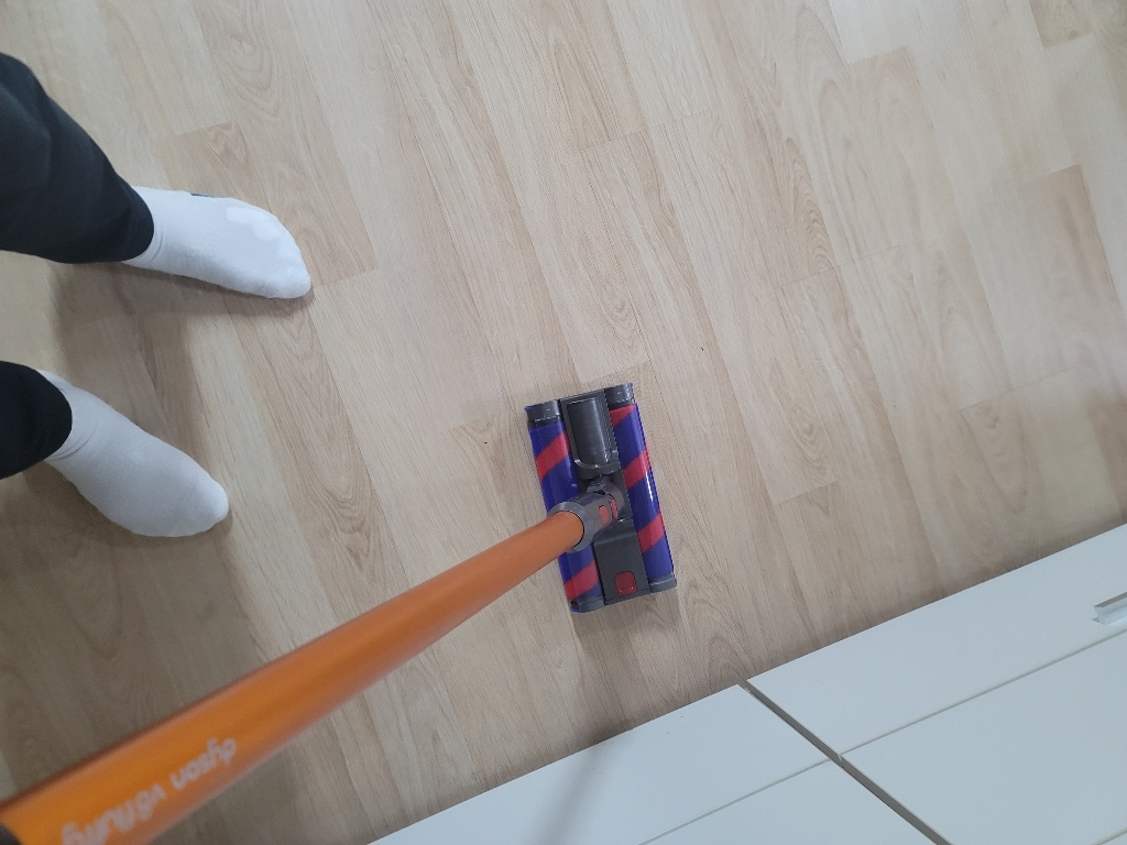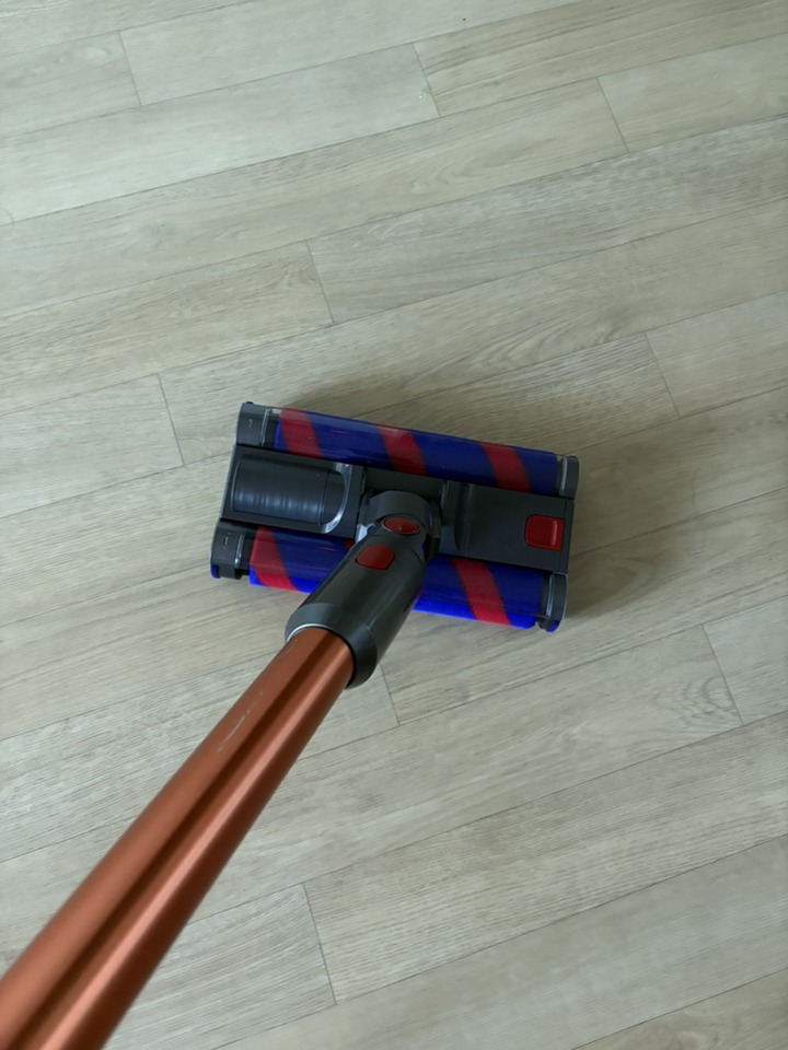 또 기본 헤드보다 살짝 더 가볍게 느껴져서 팔에 무리가 덜 갔습니다. 저는 주말마다 한 번씩 집안을 전체적으로 청소하는데, 특히 거실과 방을 모두 돌다 보면 팔이 꽤 피로해졌거든요. 그런데 이 제품은 움직임이 부드럽고 방향 전환도 편해서 한 번에 돌리기가 훨씬 수월했습니다.