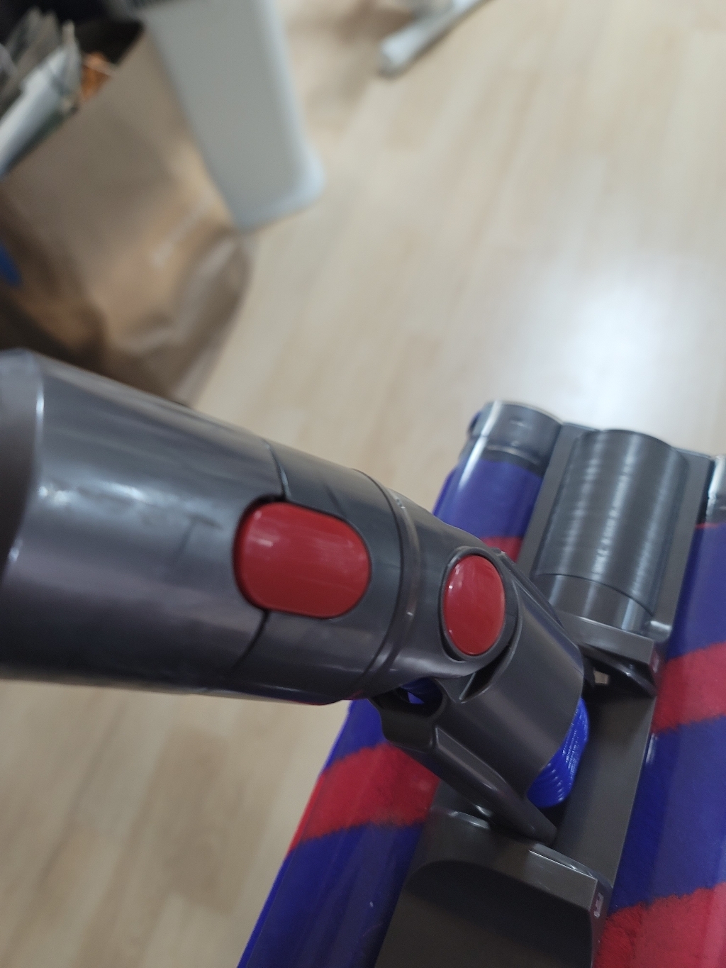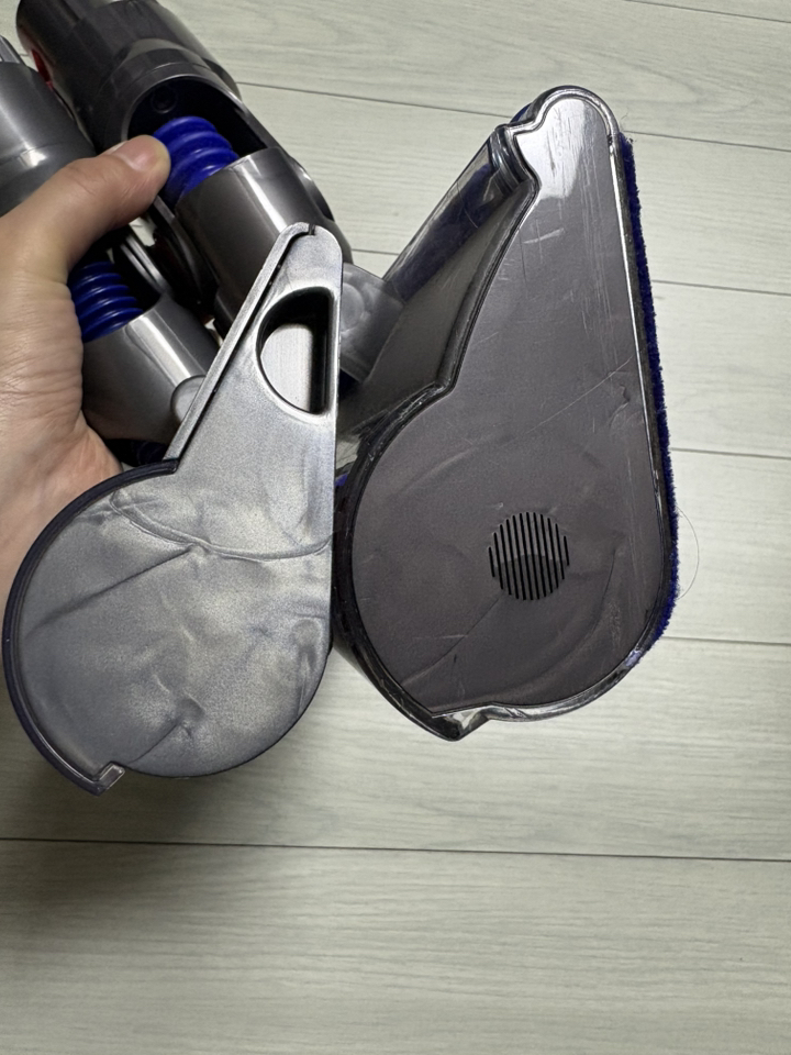 기존 다이슨 헤드와 비교했을 때, 결합 부분에서 완전히 맞물리지 않고 살짝 틈이 생기는 경우가 있어. 이로 인해 결합이 완전히 안정적이지 않거나, 가끔 분리가 될 수 있는 점은 조금 불편하게 느껴질 수 있어.