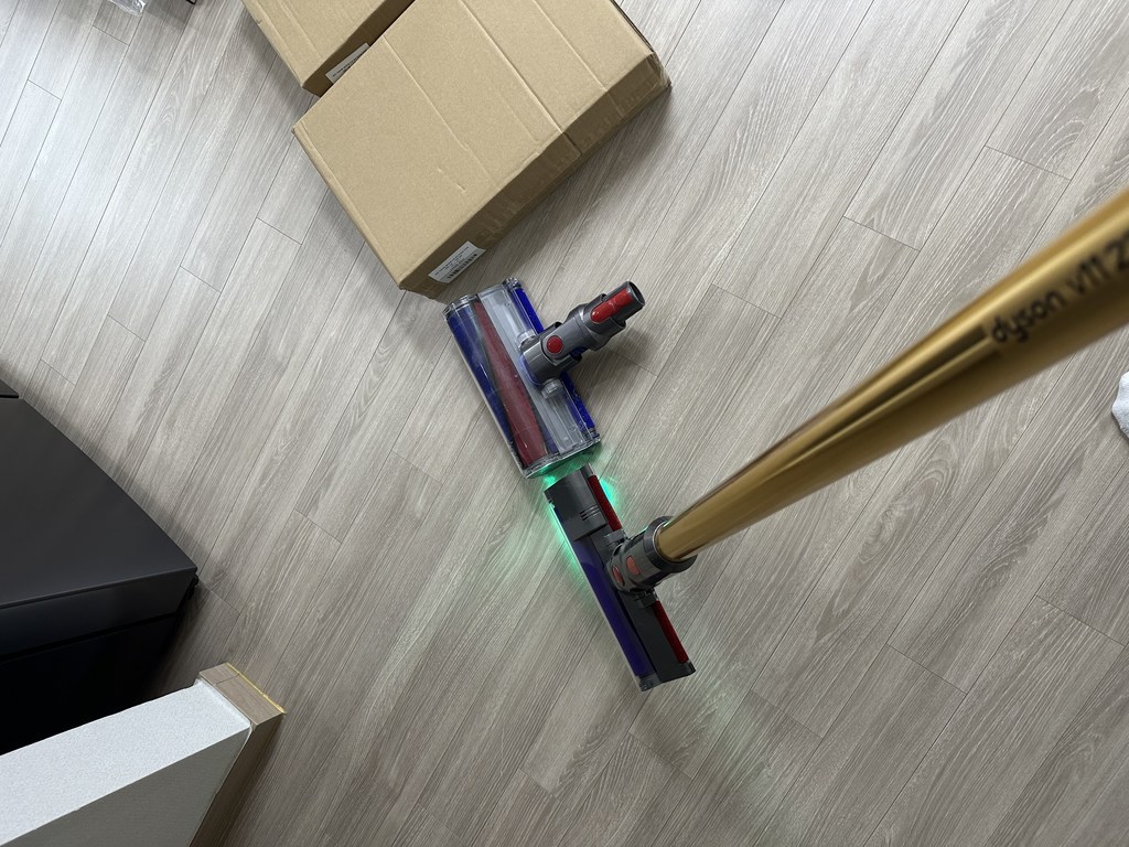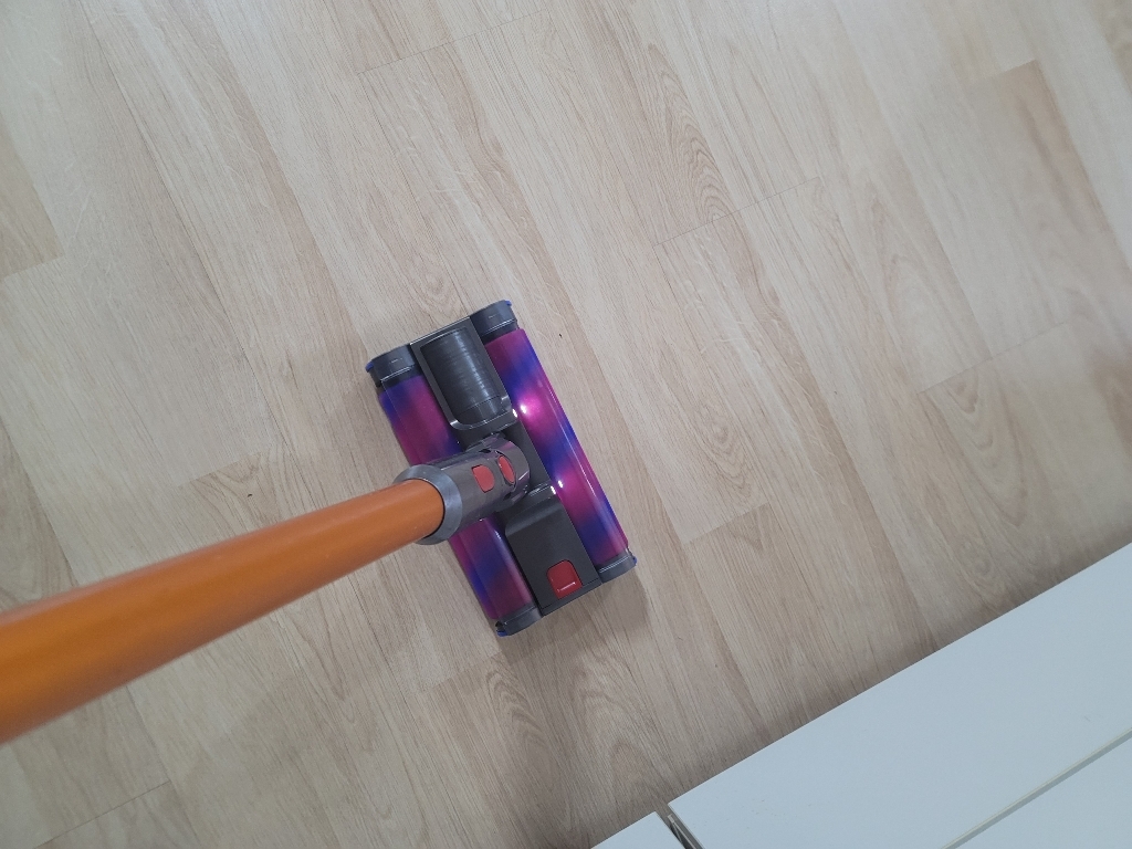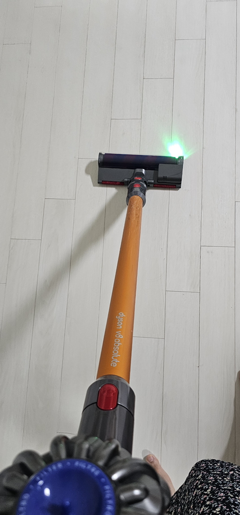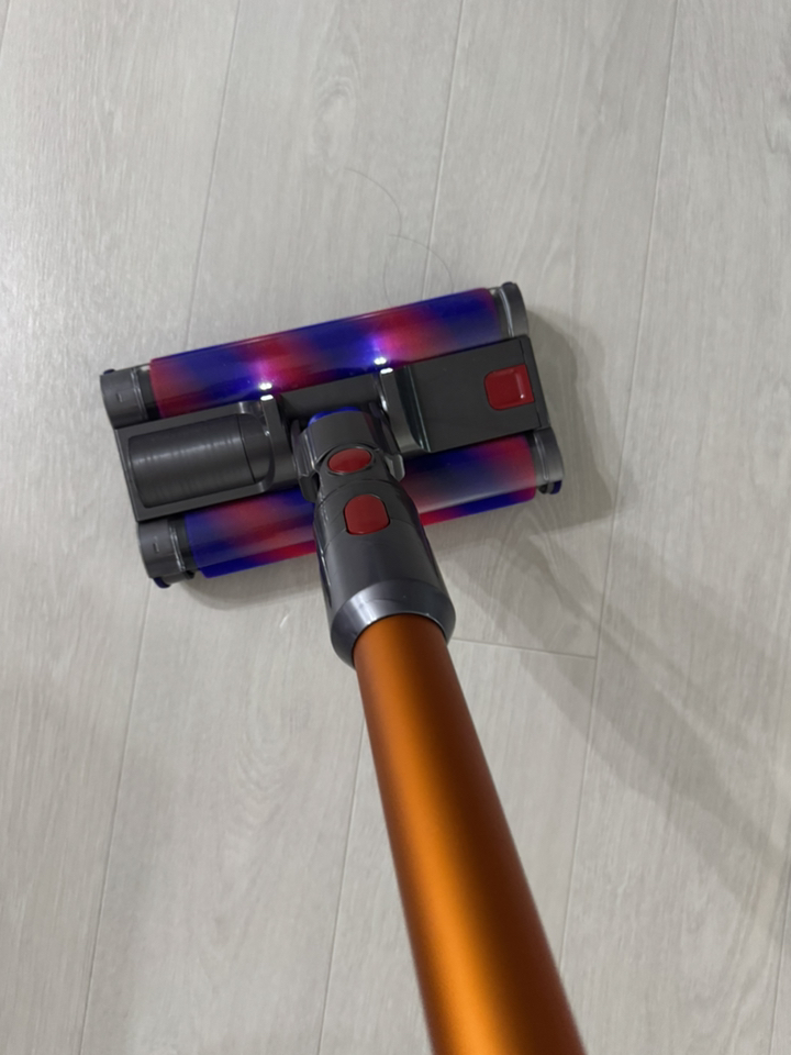 V7,V8등 플러스나 플러피는 호환기종 종류에 없길래 혹시나 안되는거 아닐까 했는데 다이슨 본체에 진짜 유격 1도 없이 딱 맞더라구요. 순정 헤드랑 똑같은 사용감인데, LED 기능만 추가된 거라 오히려 더 만족스러웠는데요. 헤드가 바닥에 닿는 느낌도 부드럽고, 움직임도 자유로워서 여기저기 쓱쓱 밀고 다니기 너무 편합니다.