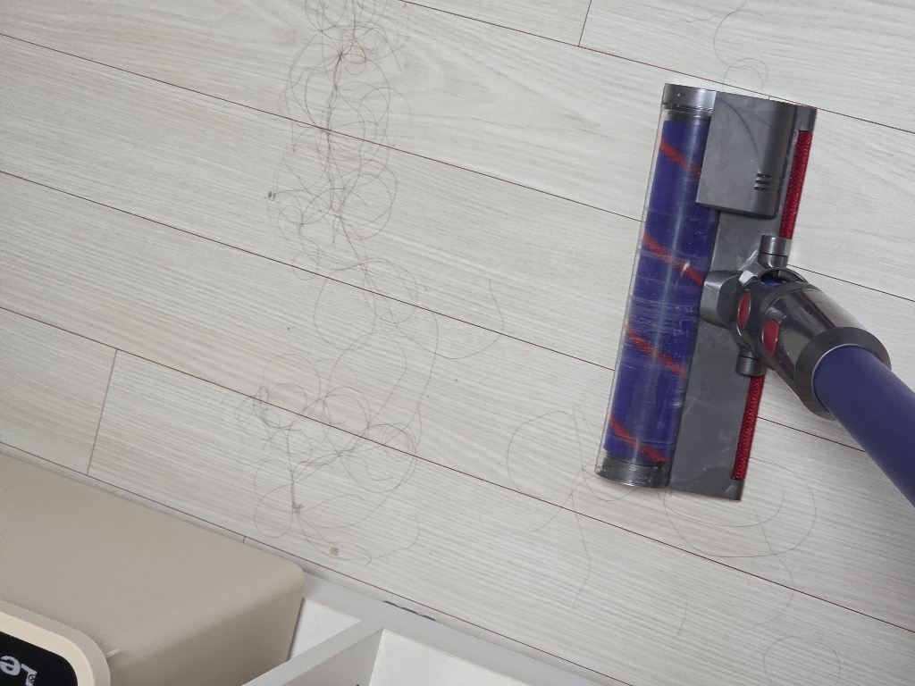 또 한 가지는 브러시 부분이 정품보다 약간 덜 촘촘한 느낌이라 긴 머리카락이 감기면 청소를 자주 해줘야 했습니다. 물론 분리해서 세척이 가능한 구조라 크게 불편하지는 않았지만, 정품보다는 손이 조금 더 자주 갔습니다.