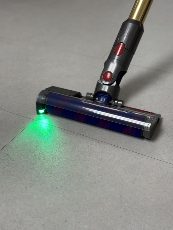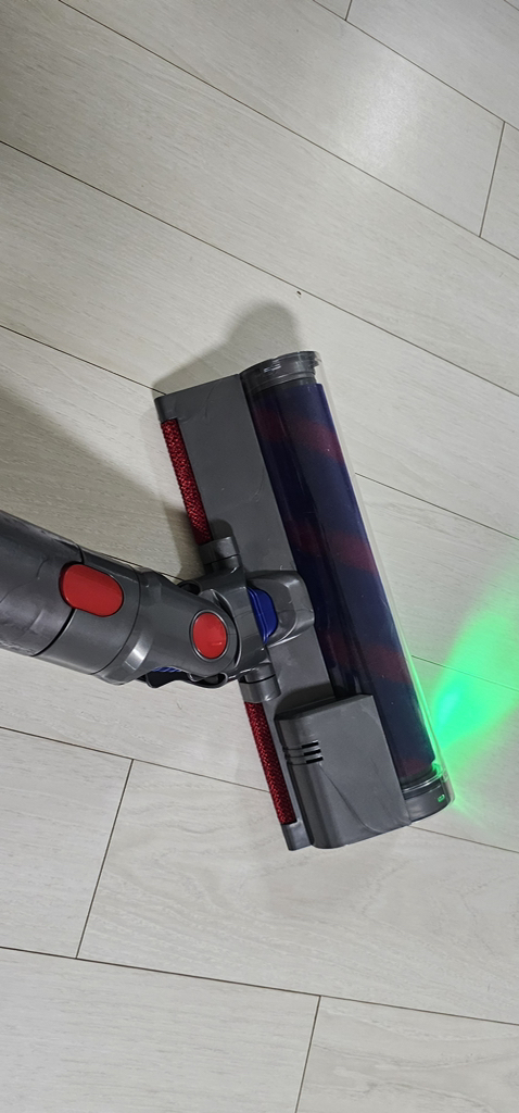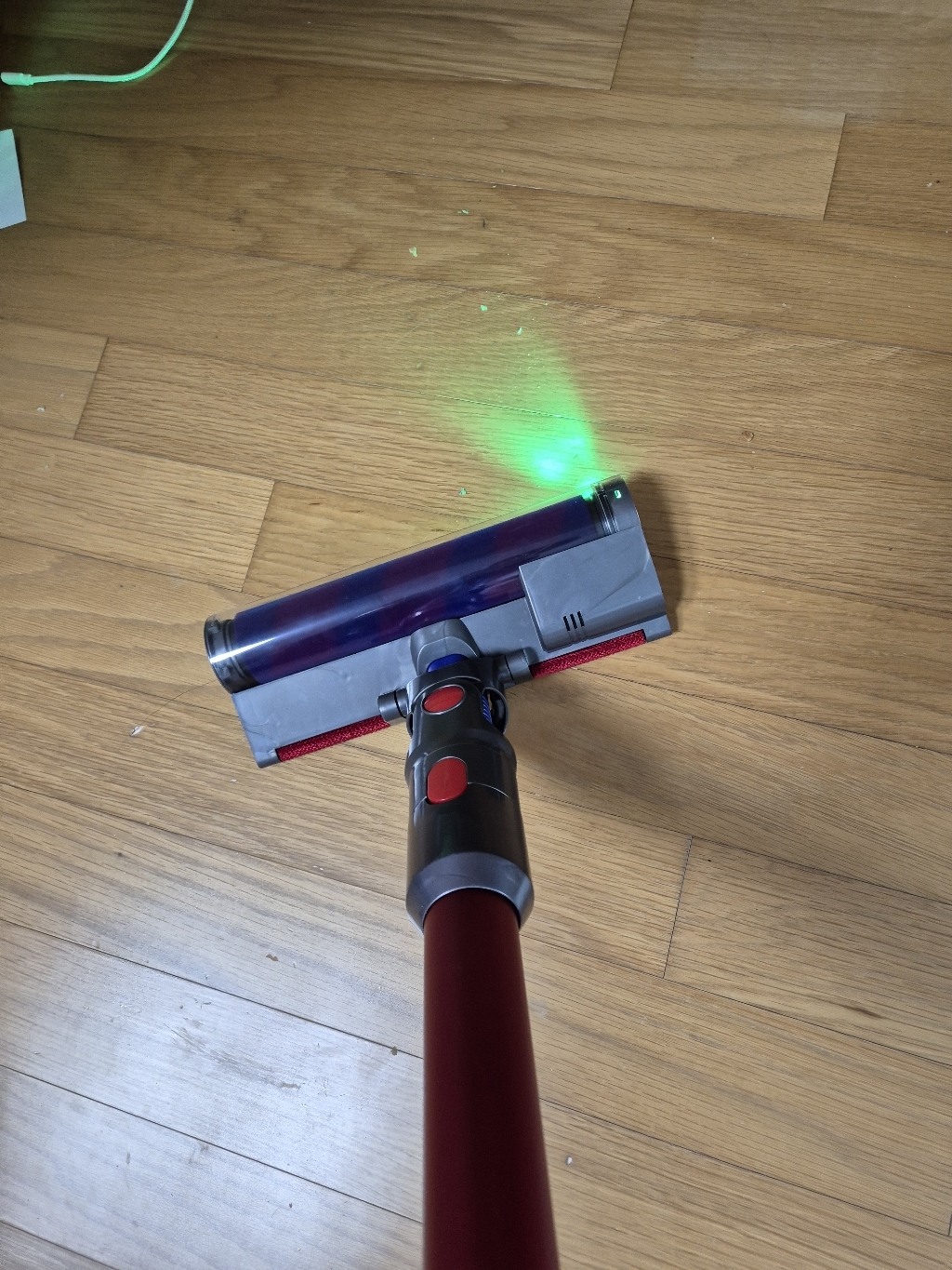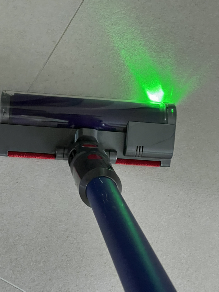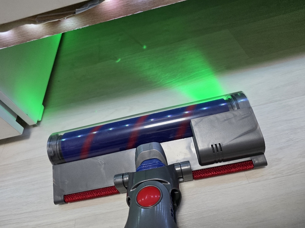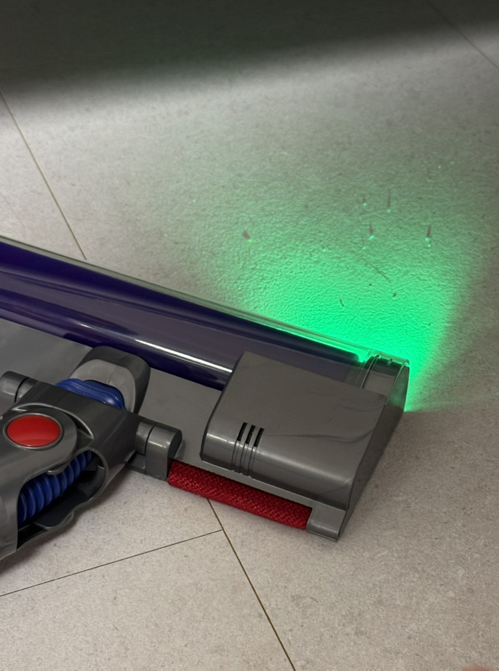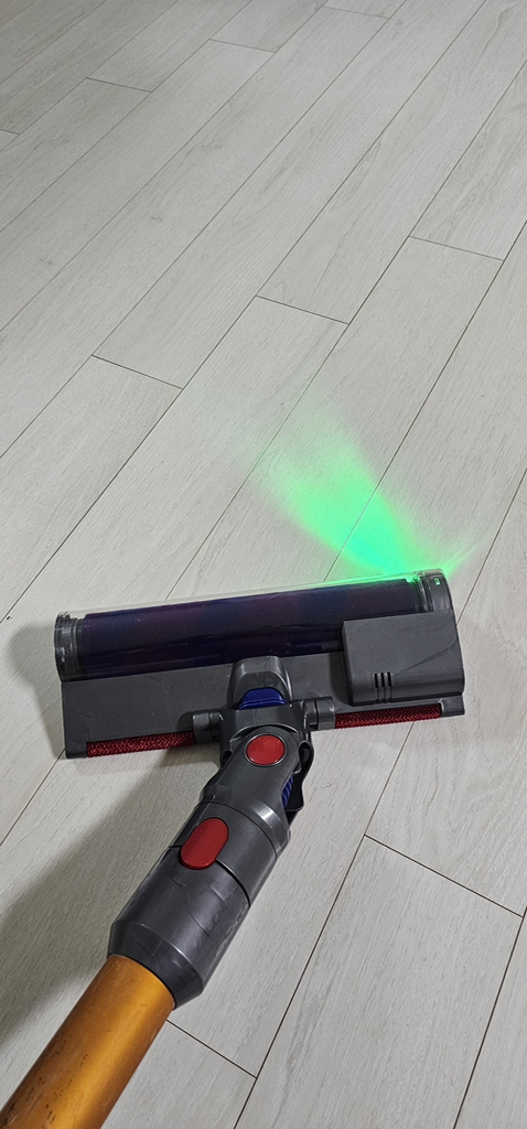 이 헤드에서 나오는 레이저 빛은 정말 인상적! 바닥에 먼지나 이물질이 잘 보이지 않을 때 레이저가 정확하게 비춰줘서, 작은 먼지까지도 놓치지 않고 청소할 수 있어. 특히 어두운 곳에서 청소할 때 진짜 유용하고, 확실히 청소 효율이 높아지는 느낌이야!