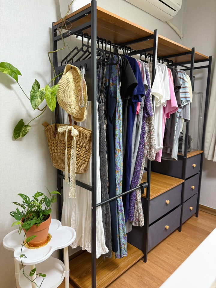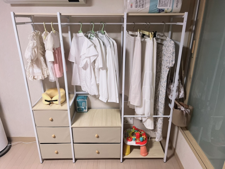 특히 확장형이라 집 구조나 옷 양에 맞춰 조절할 수 있는 점이 큰 장점. 공간을 많이 차지하지 않으면서도 수납력이 확실해서 진작 샀어야 했다는 생각이 들었어요.