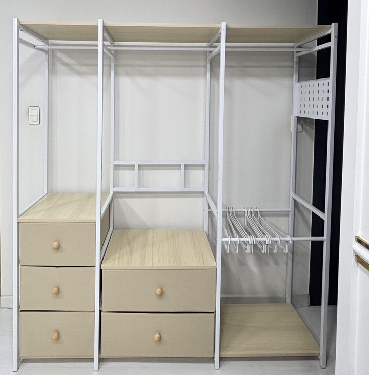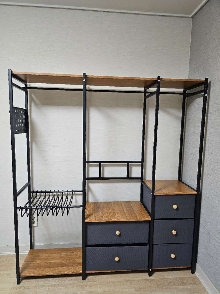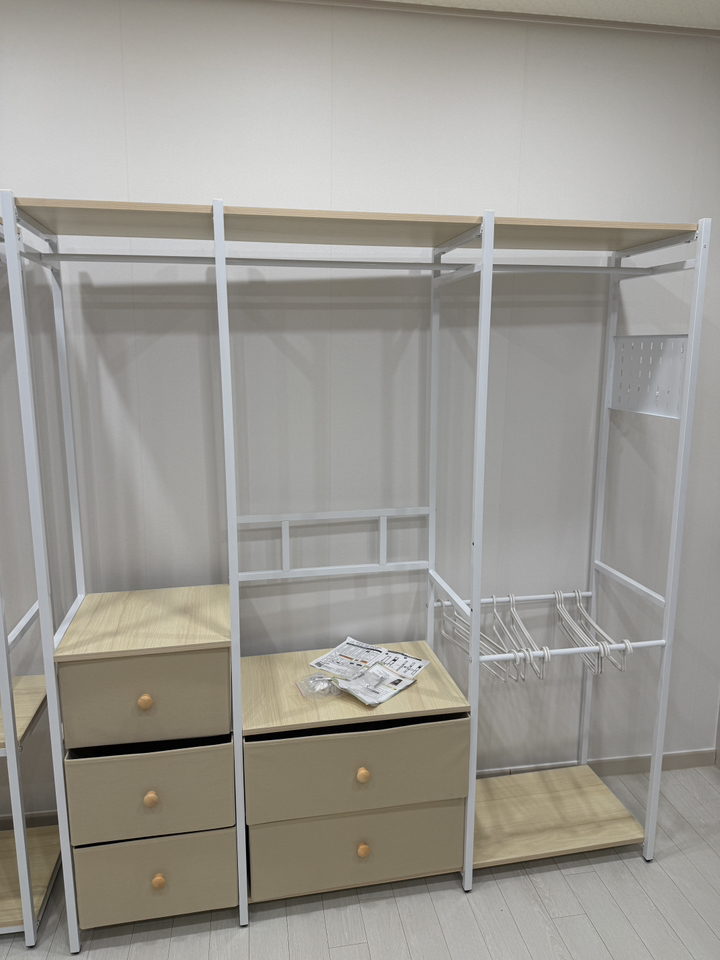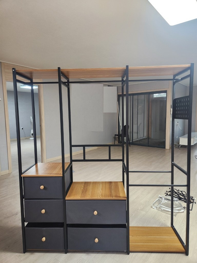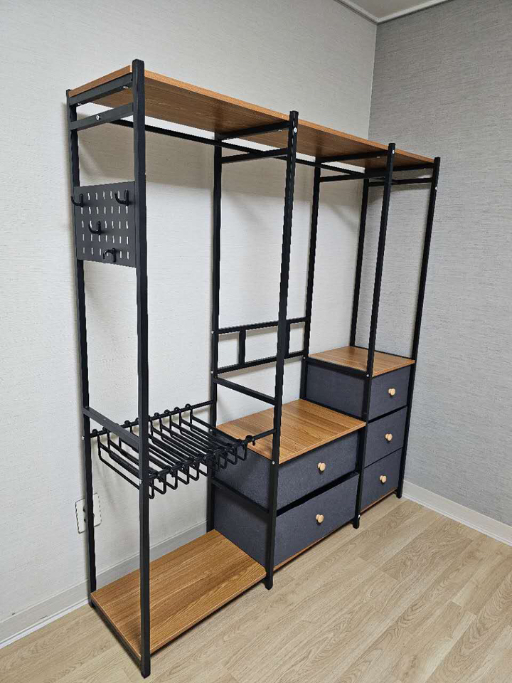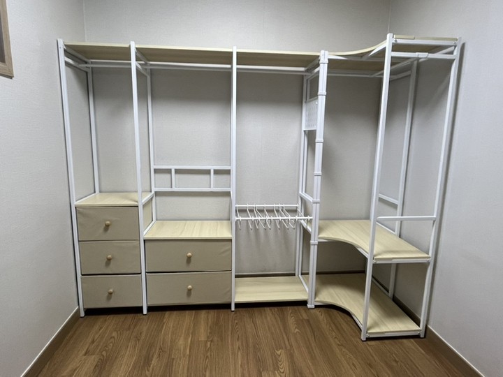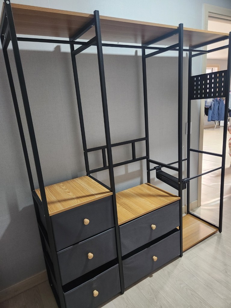 가격 대비 구성과 디자인, 공간 활용도가 모두 만족스럽습니다. 시어머니 집처럼 좁은 방이나 가볍게 옷을 정리해야 하는 공간에 정말 딱 맞는 제품이에요. 조립만 천천히 하면 완성 후에는 안정감 있게 잘 사용 가능하고, 필요한 만큼 확장하거나 변형해 쓸 수도 있어서 활용도가 높습니다. 다시 구매할 의향도 있어요