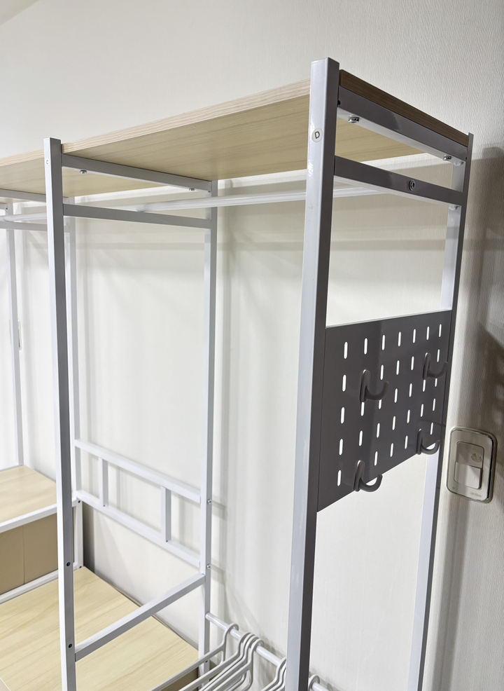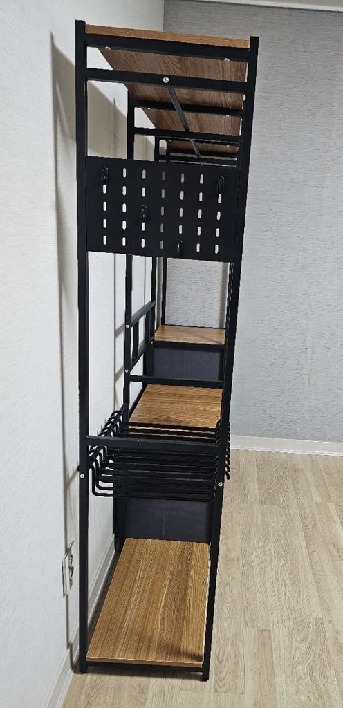 측면 활용: 프레임 옆면에 S자 고리나 네트망을 추가로 설치하면 모자, 가방, 벨트 등의 잡화를 효율적으로 정리할 수 있습니다.