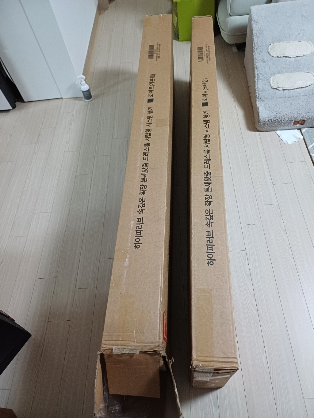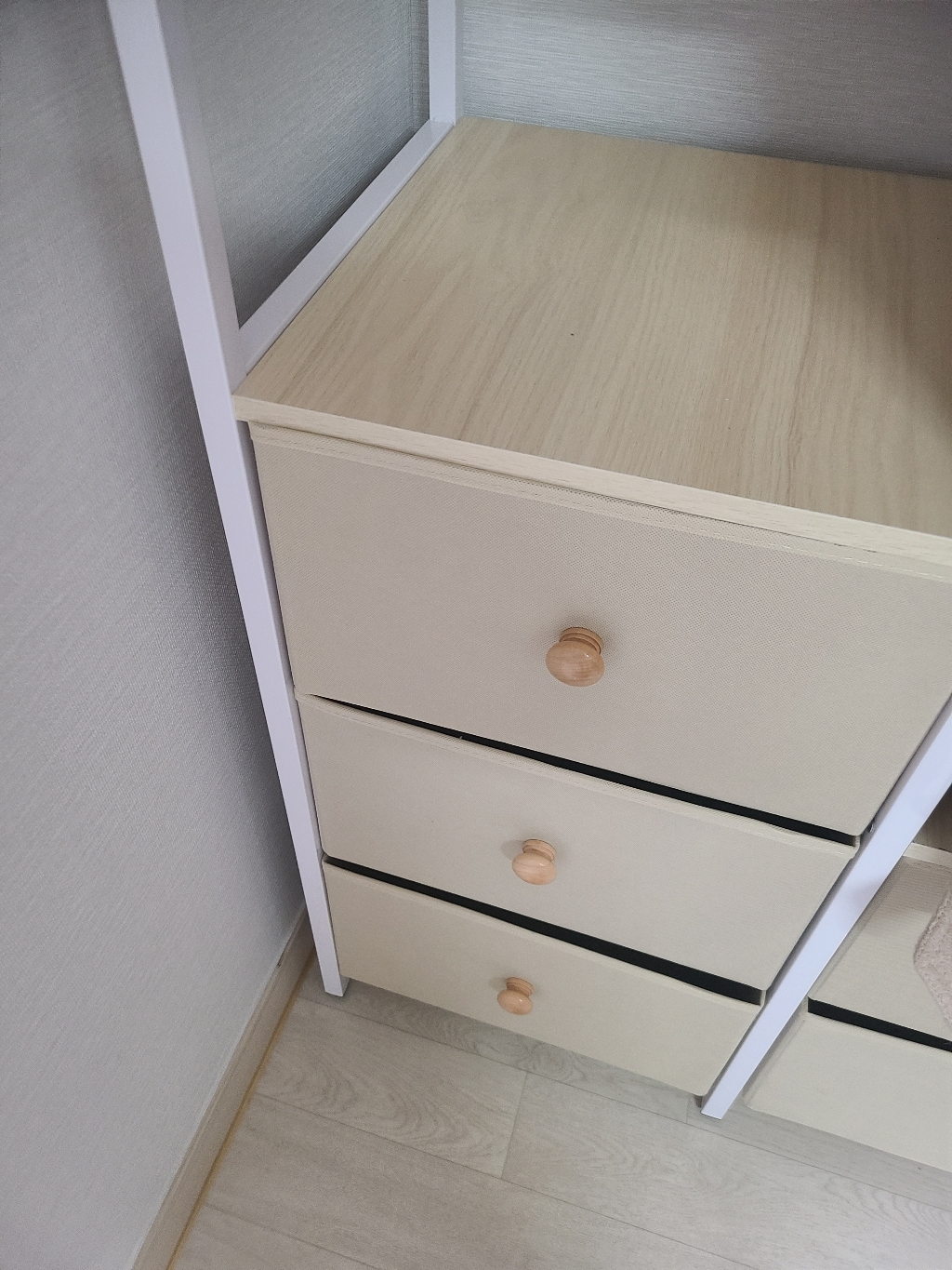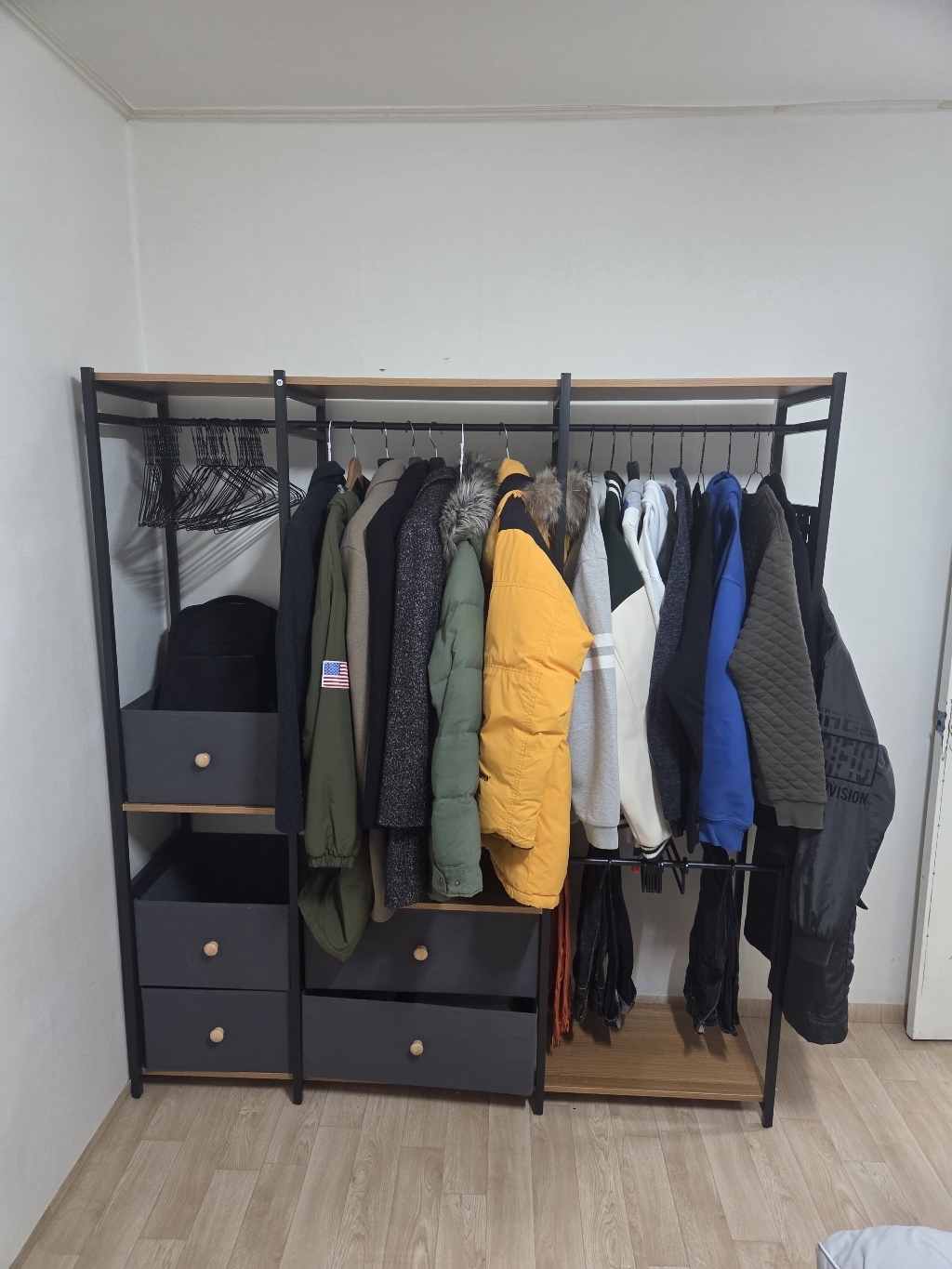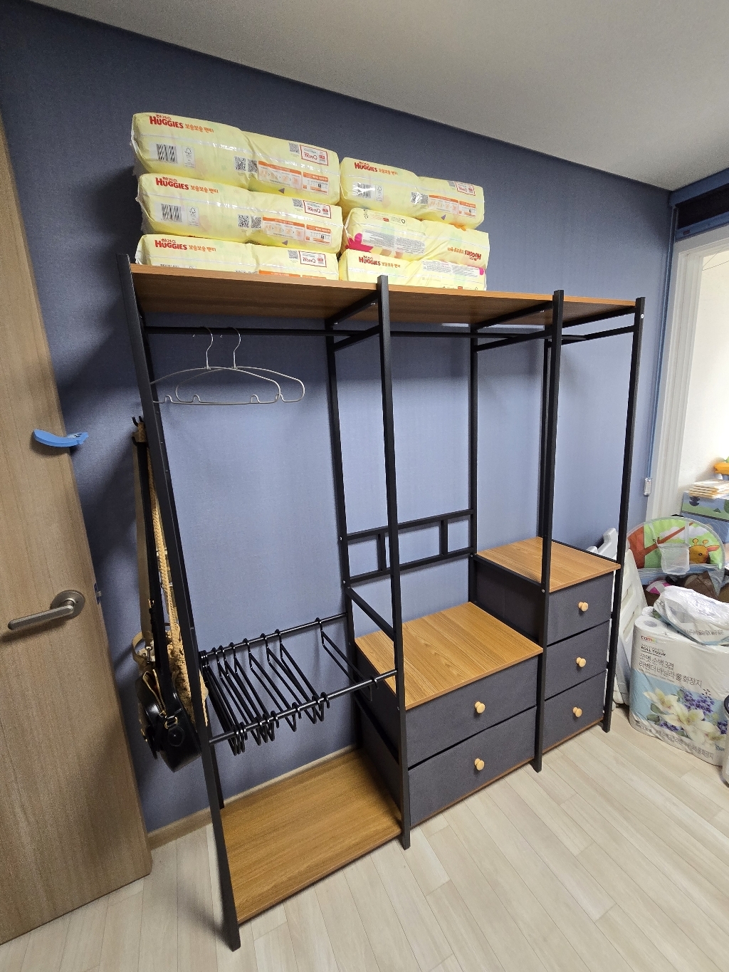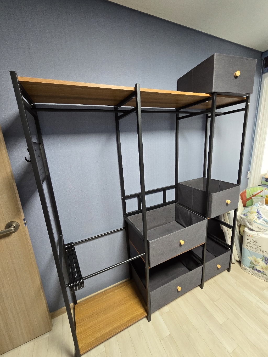 기존 옷장은 공간도 애매하고 서랍도 작아서 항상 꽉 차 있었는데, 이번엔 확장형이라 그런지 공간 활용이 훨씬 여유롭습니다.
