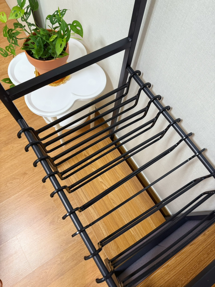 또한 사진과는 조금 다르게, 저는 집 구조에 맞춰 행거를 180도로 돌려 설치했는데 오히려 제 공간에 더 잘 맞고 예쁘며 실용적이었습니다. 디자인, 내구성, 활용도 모두 대만족이에요.