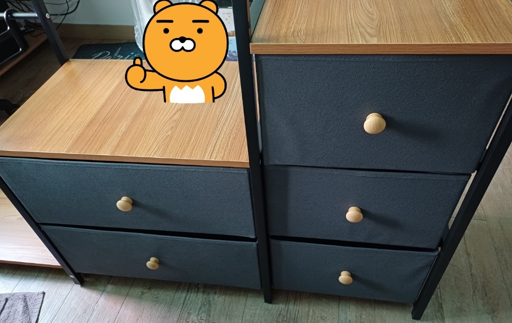무엇보다 서랍이 5개나 있어서 수납력이 정말 뛰어납니다. 속옷, 양말, 작은 소품들을 종류별로 나눠서 정리할 수 있으니 필요한 것을 바로 찾을 수 있고, 그동안 어수선했던 방이 한순간에 깔끔하게 변했습니다. 특히 바닥 공간까지 효율적으로 활용할 수 있어서 신발이나 가방도 예쁘게 보관할 수 있다는 점이 큰 장점입니다.